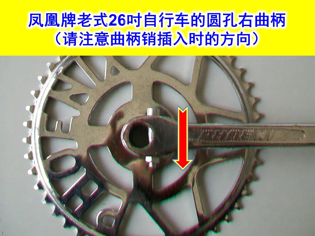 [【综述一】][凤凰牌老式自行车,原来一直装B型中轴和圆孔曲柄。20世纪产的内销的凤凰牌老式自行车,其曲柄绝大多数为公制。]