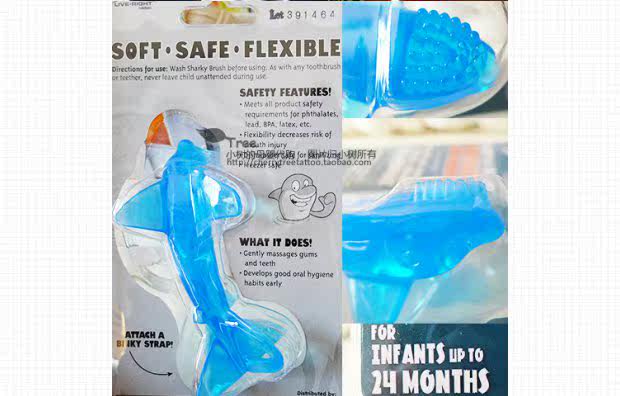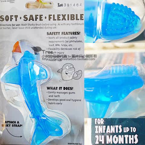 Детская акула, детский прорезыватель, зубная щетка для правильного прикуса, (в наличии на складе), США, 0-24 мес.