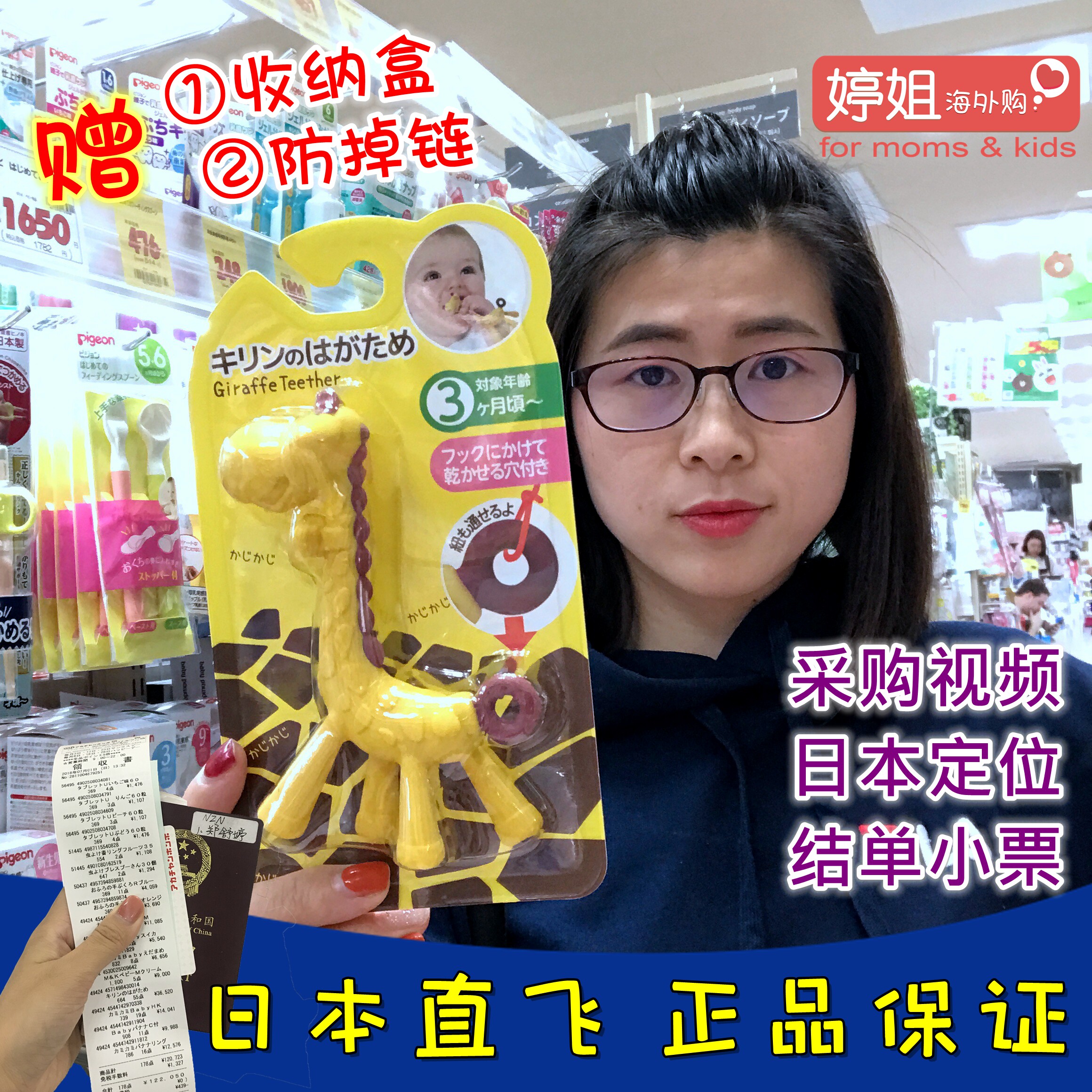Японский прорезыватель для младенца, жевательная игрушка, жираф, 3 мес.
