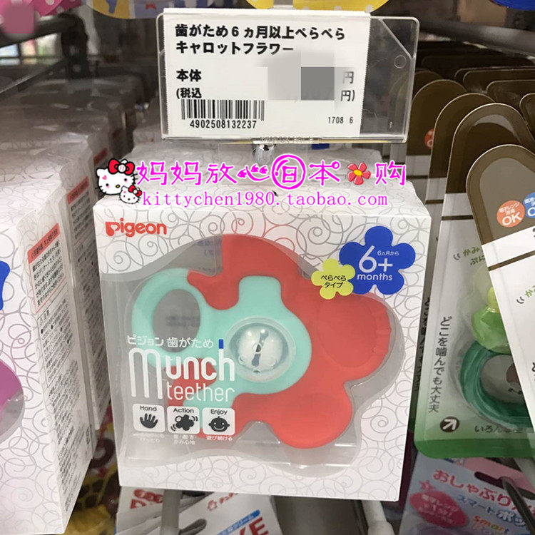 Pigeon, японский детский колокольчик, оральный прорезыватель для тренировок, (в наличии на складе), в цветочек, 3 мес., 6 мес.