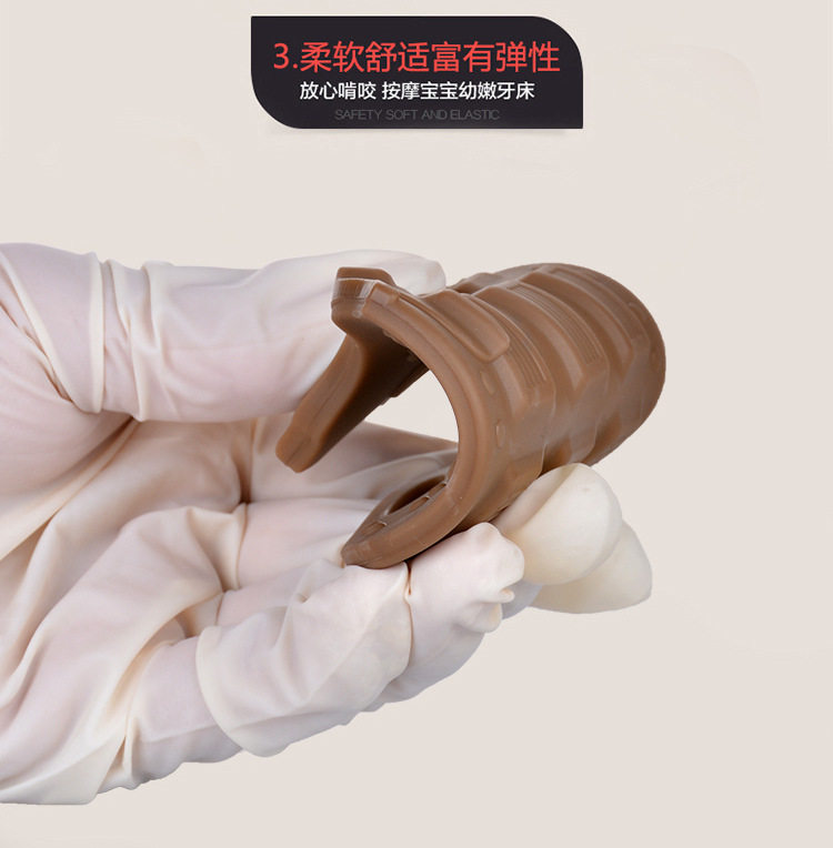 Третий этап: когда верхние и нижние четырех зубов растут, когда ребенок выращивает передние зубы и 4 заостренных зуба (собачьи зубы), рекомендуется выбрать соску, похожий на соску, соритель, который является легким, И легко понять глянцевые, мягкие и твердые сенсорные слои, не только массажируйте зубы вокруг зубов, но и заставляют ребенка испытать ощущение жевания.