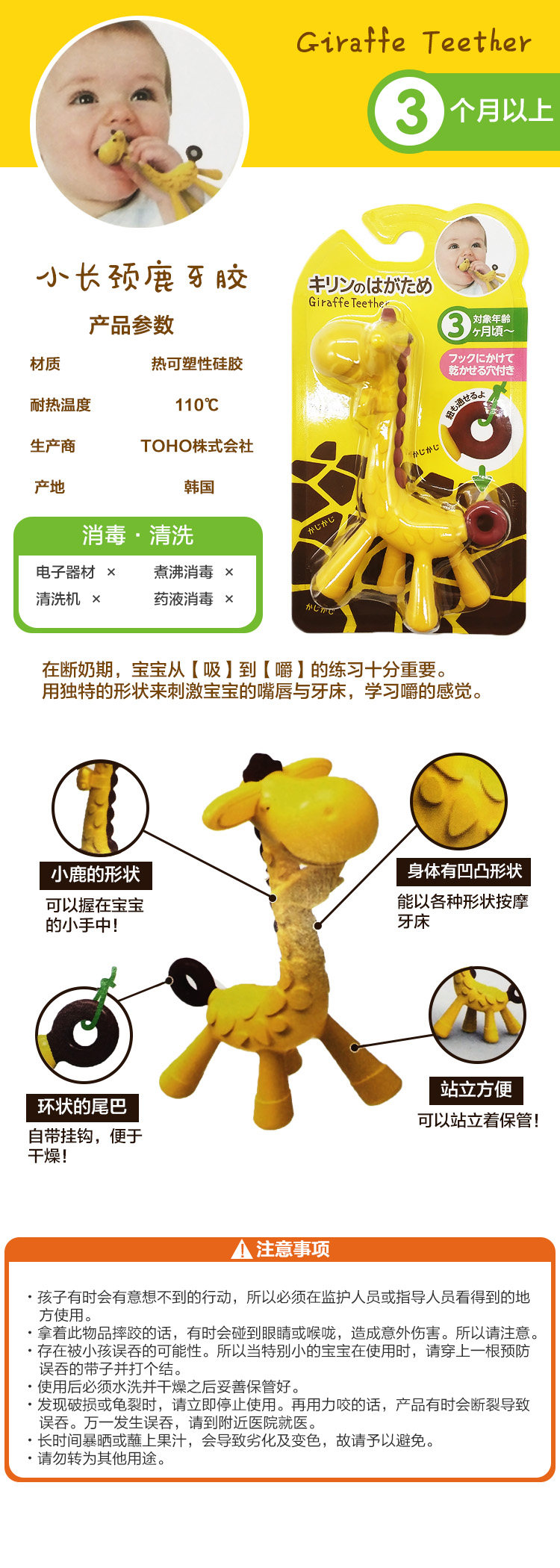Японский импортный прорезыватель для младенца, жевательная игрушка, жираф, 3 мес.