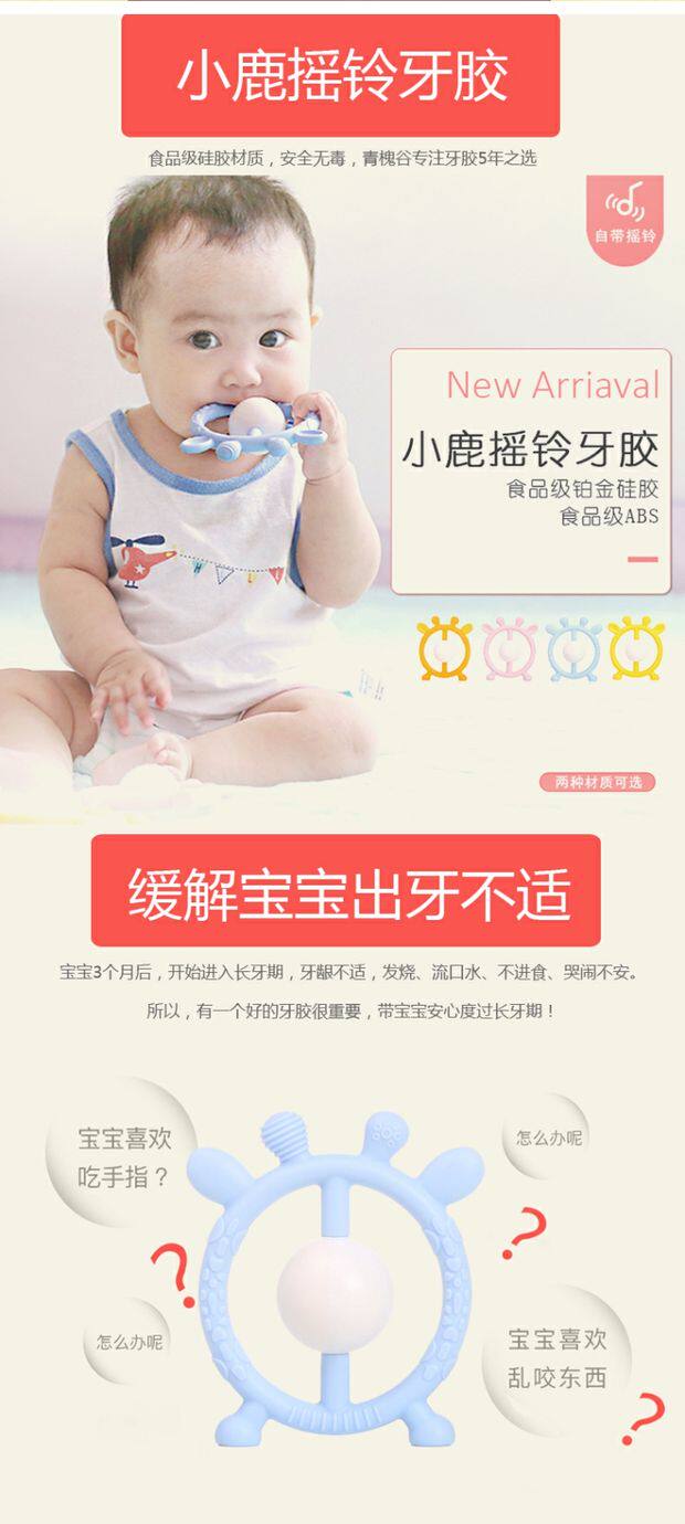 Погремушка, детский жевательный прорезыватель, нетоксичная силиконовая детская игрушка, 3-12 мес.
