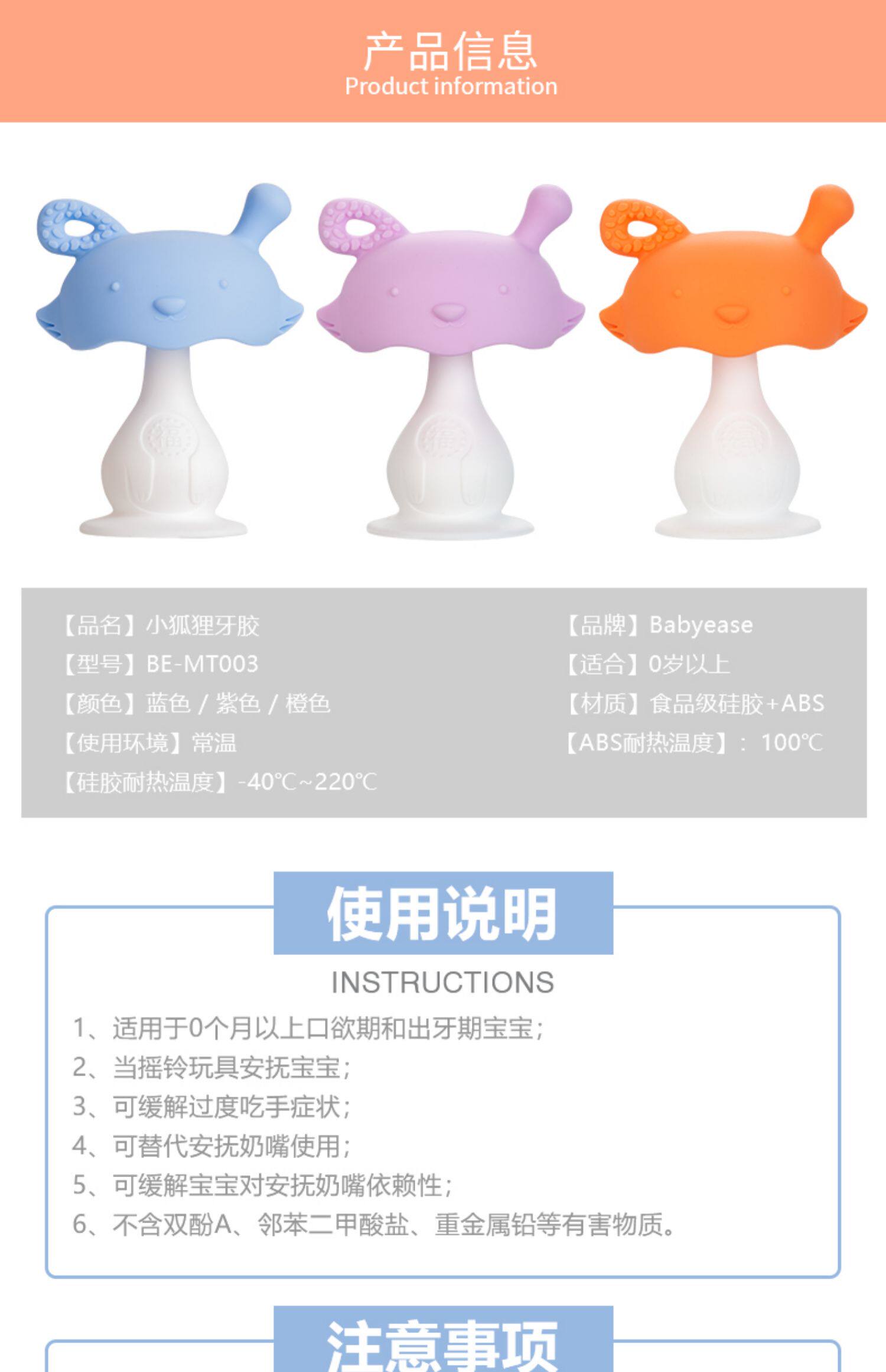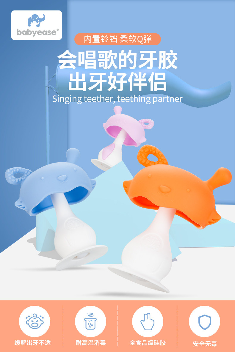 Детский прорезыватель, игрушка, успокаивающая детская нетоксичная силиконовая жевательная погремушка с грибочками-гвоздиками, 0-6 лет