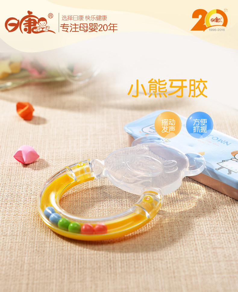 日康 Прорезыватель, погремушка, жевательная детская игрушка, детский пищевой силикон, с медвежатами