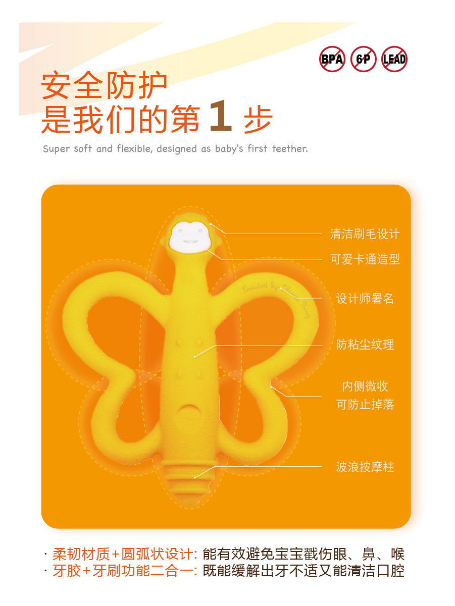 Универсальный прорезыватель с бабочкой для йоги, зубная щетка для тренировок, игрушка, 6-18 мес.