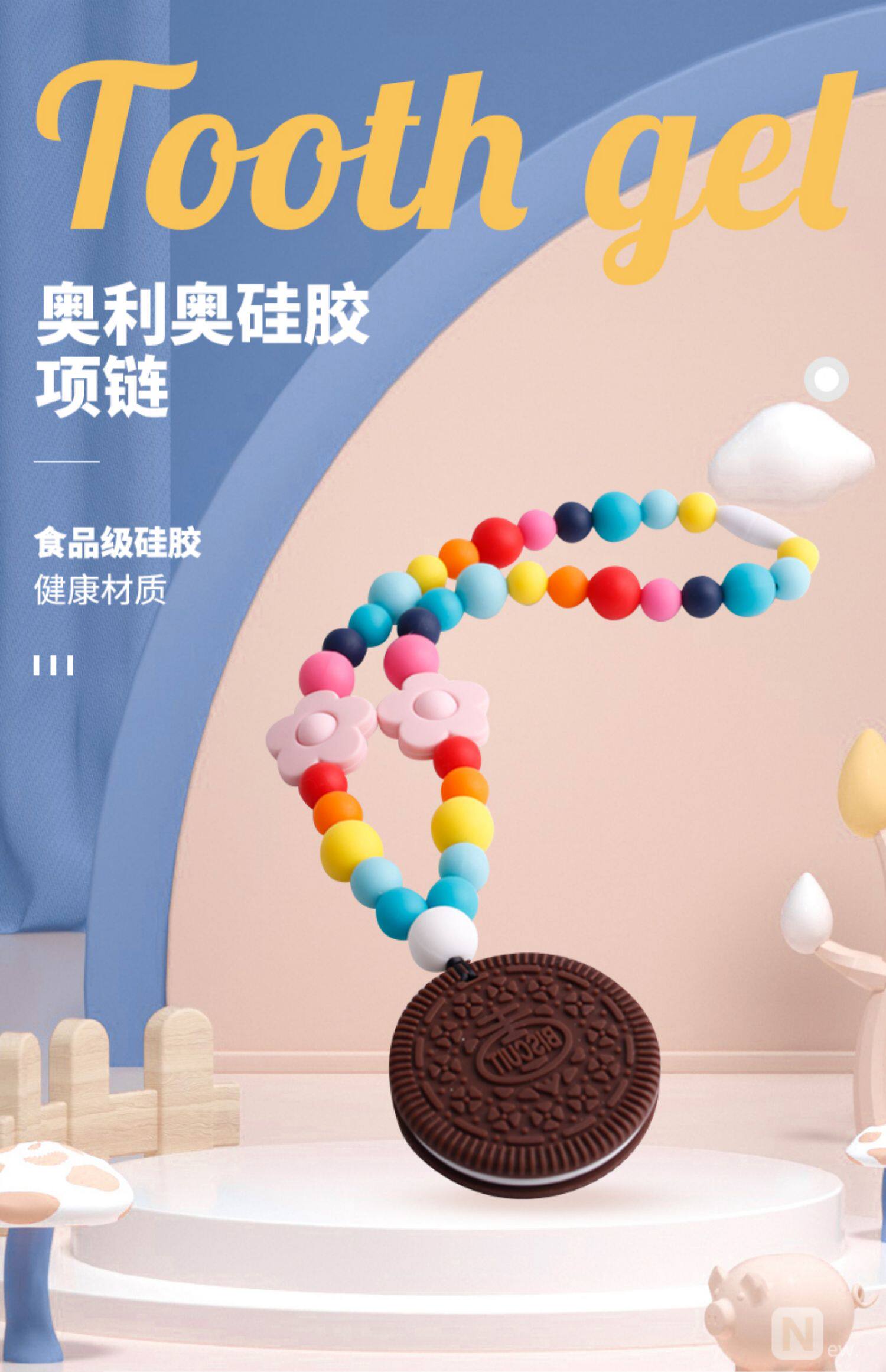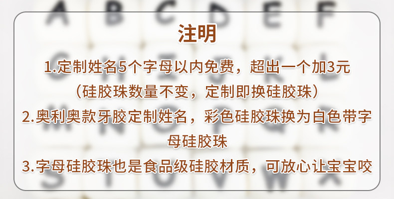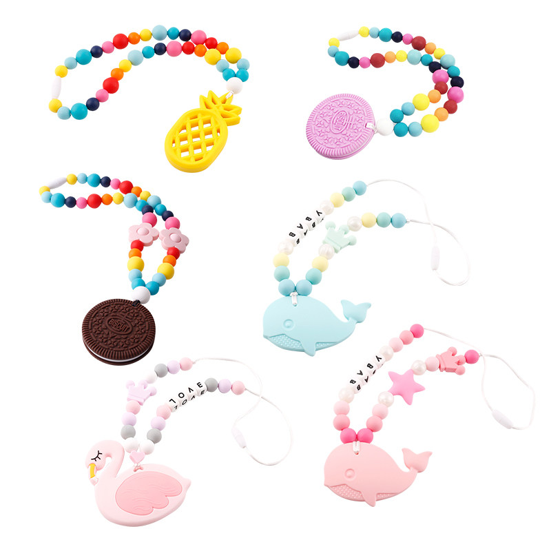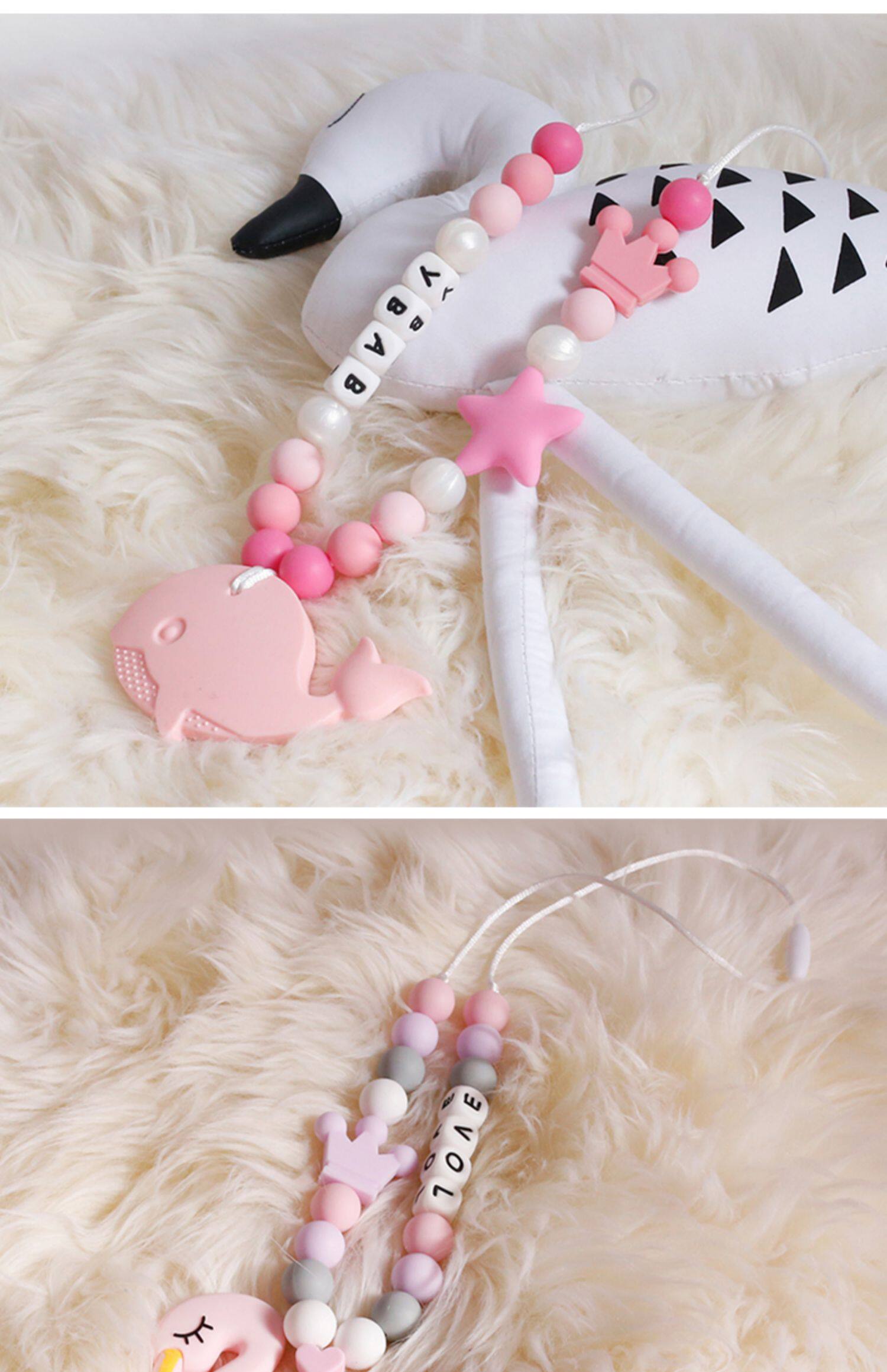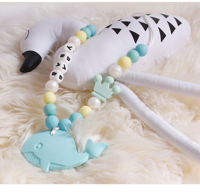 - Прорезыватель, шнурок-держатель, ожерелье с буквами