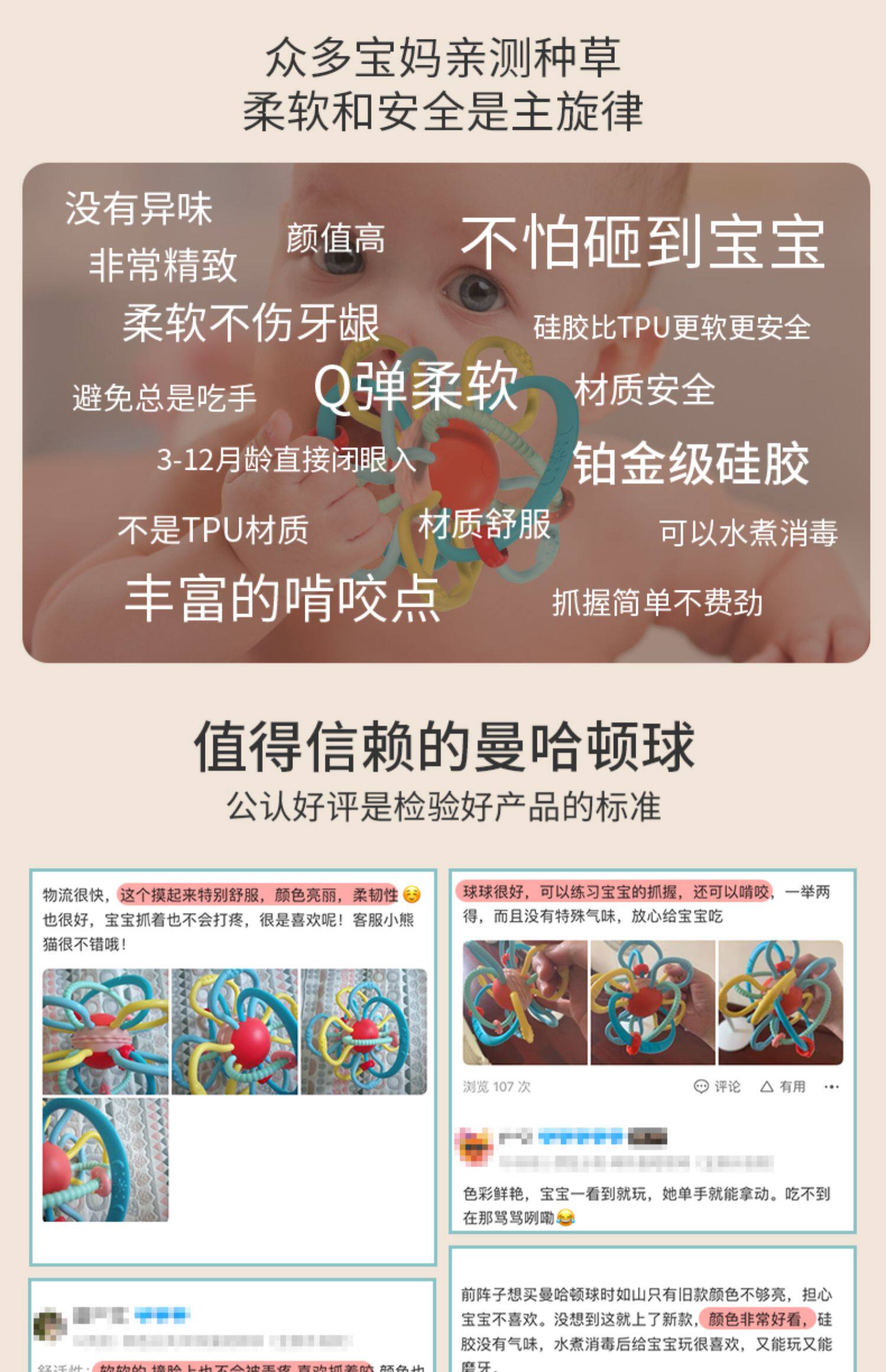 Хваталка, детский прорезыватель, силиконовая игрушка, 4-6 мес., можно грызть
