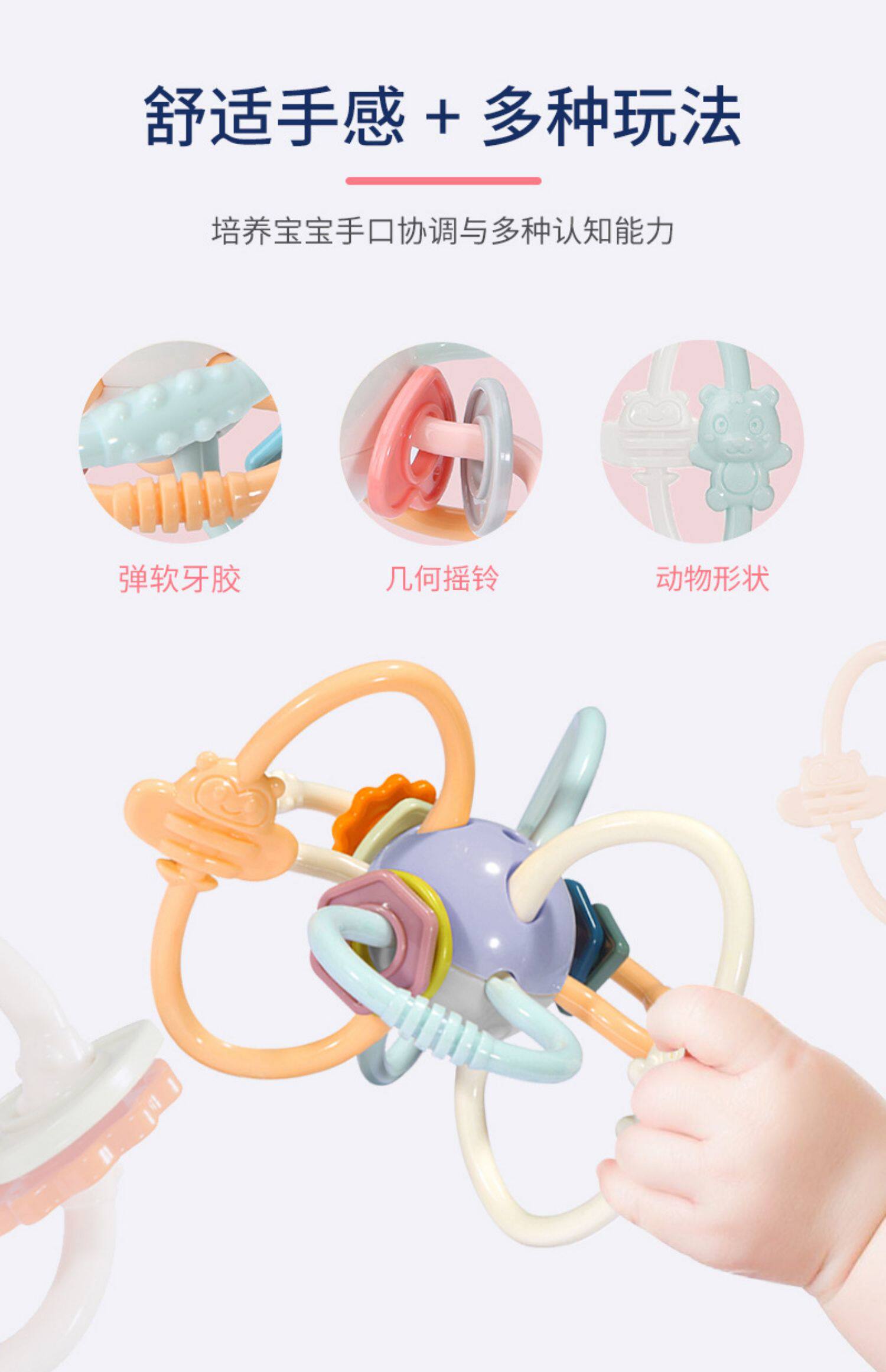 Детская хваталка, детский прорезыватель, жевательная нетоксичная игрушка, 6 мес.
