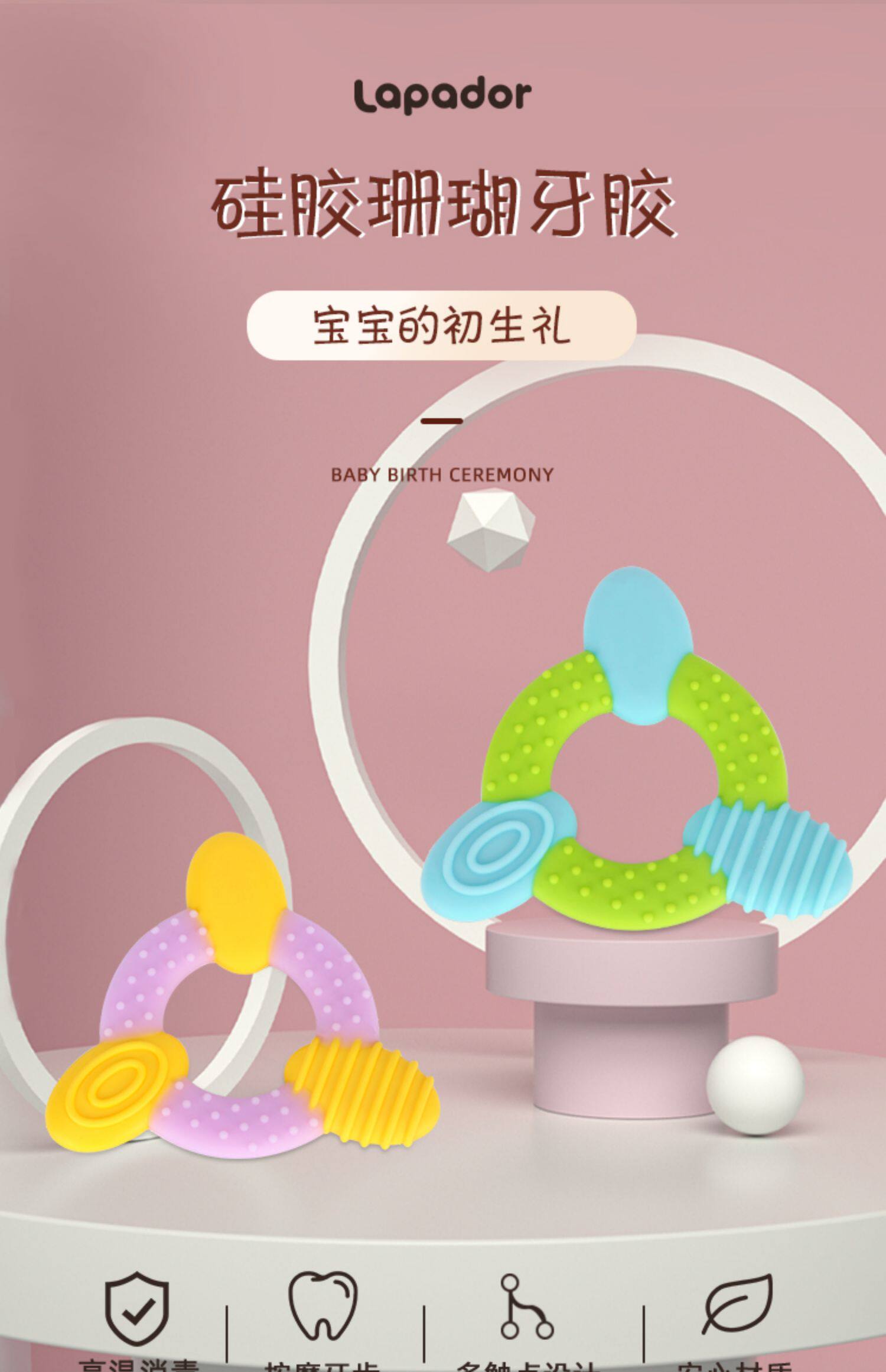 Детский прорезыватель, жевательный пищевой силикон, 6 мес.