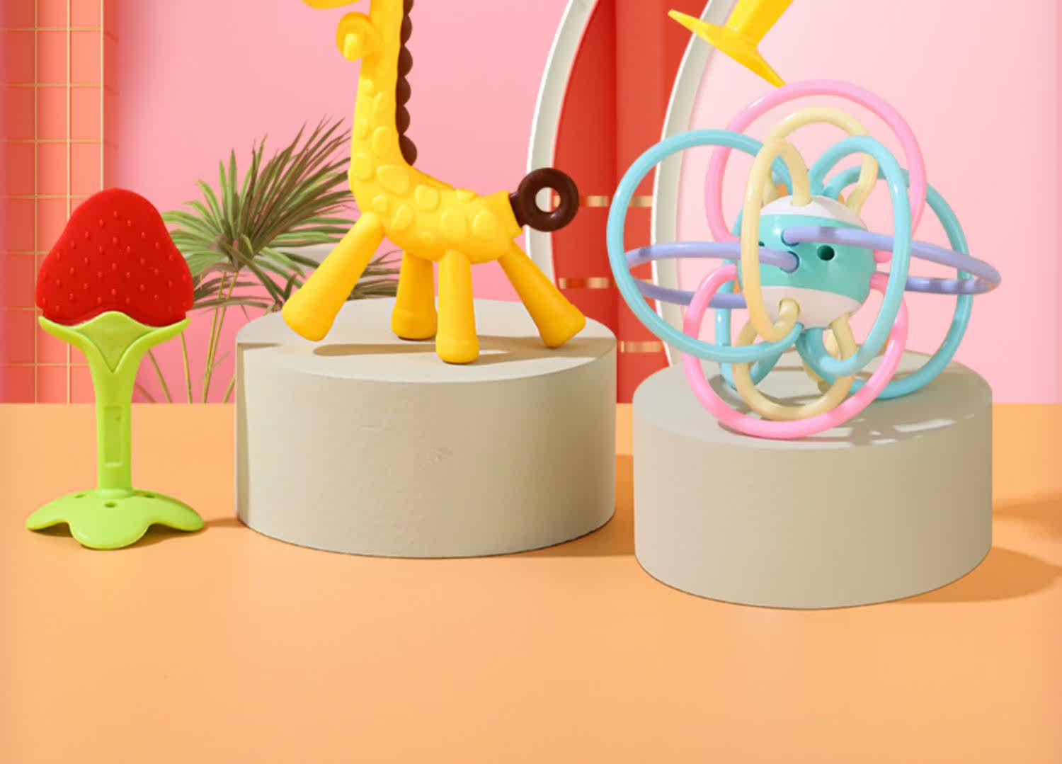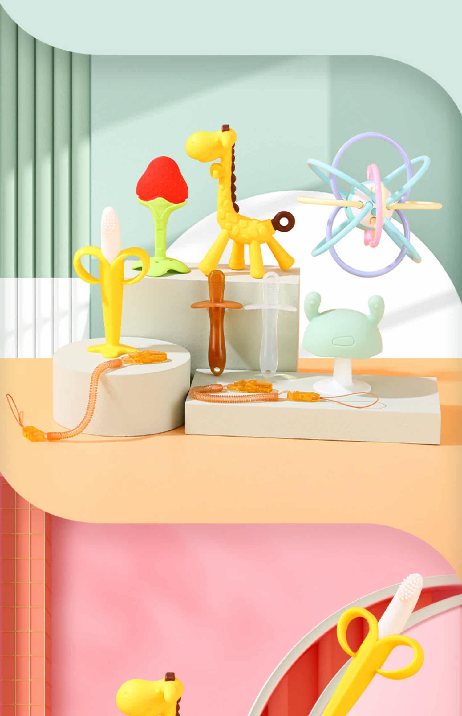 Детский прорезыватель, силиконовая нетоксичная игрушка с грибочками-гвоздиками, 6 мес., 7 мес.