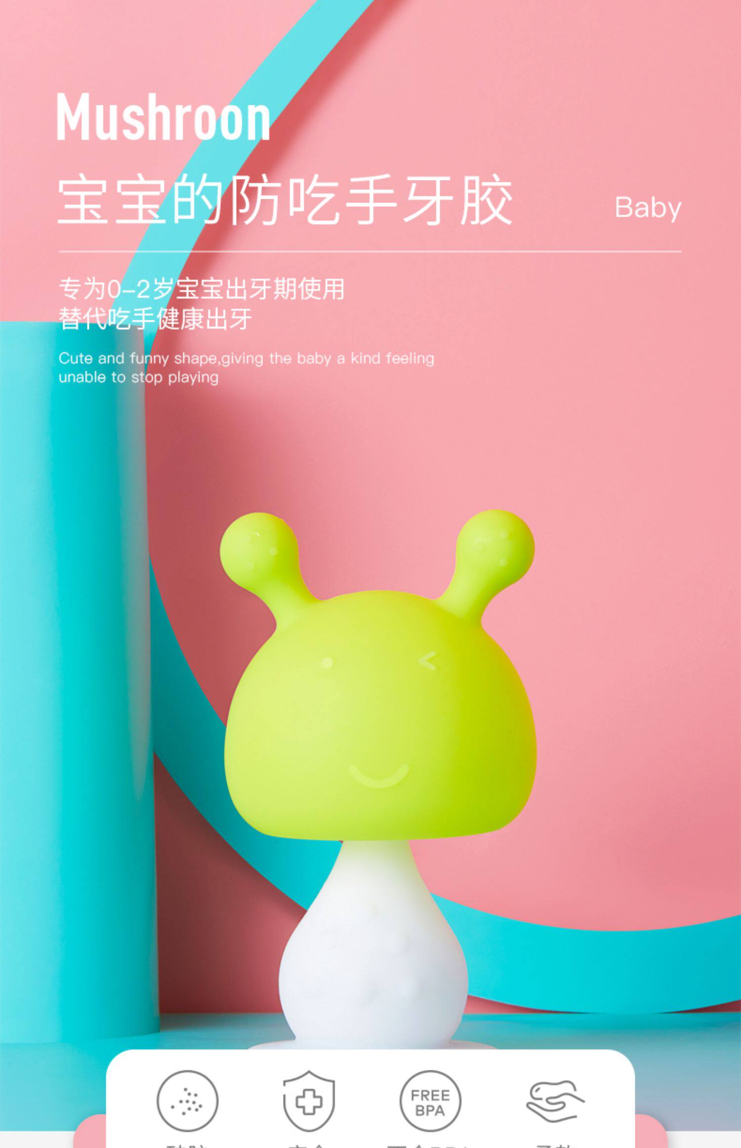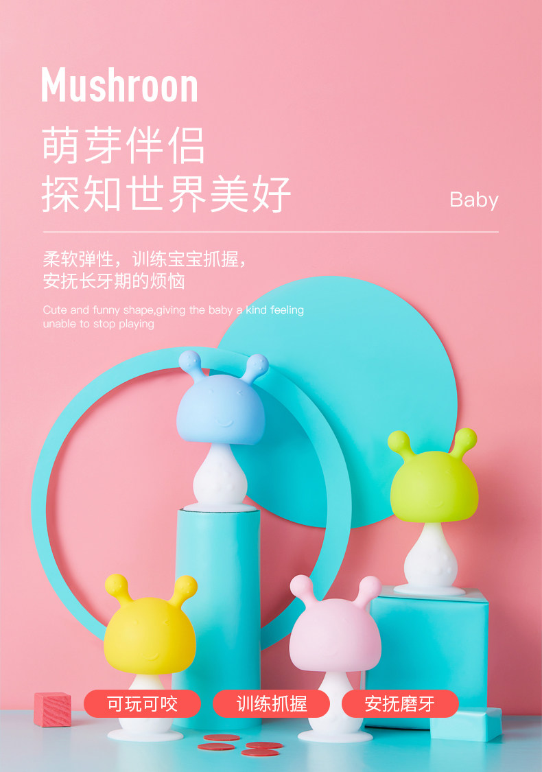 Детский прорезыватель с грибочками-гвоздиками, жевательная детская хваталка, силиконовая игрушка
