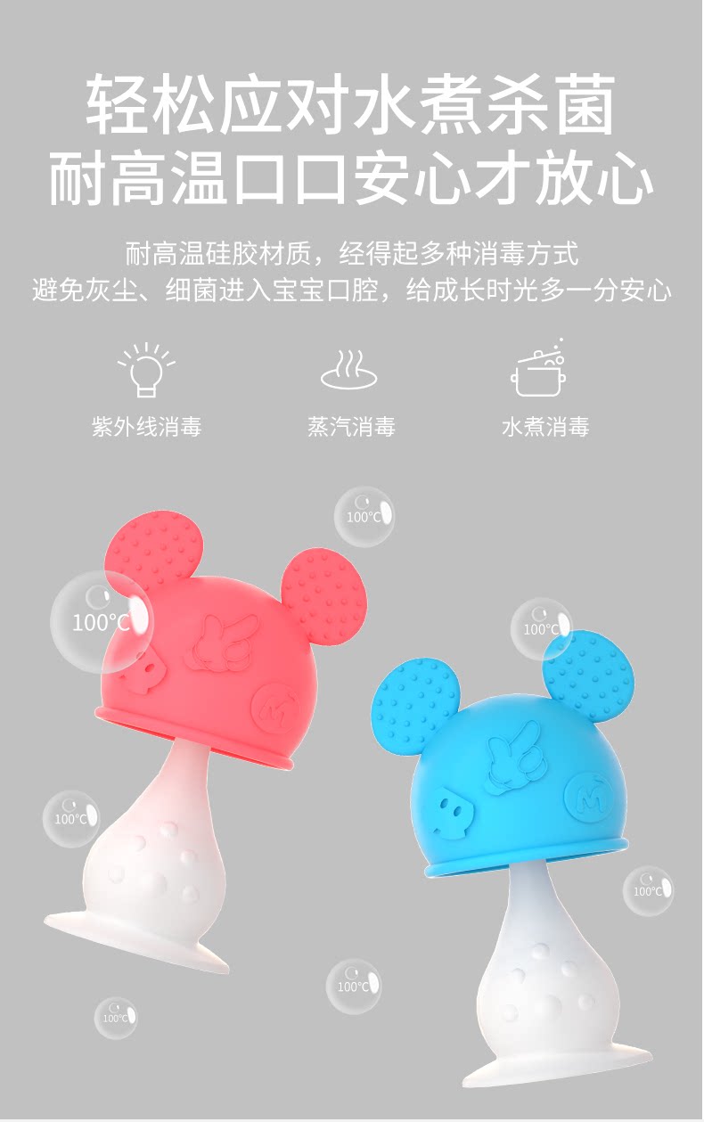 Дисней, детский прорезыватель с грибочками-гвоздиками для правильного прикуса, силиконовая игрушка, 3 мес.
