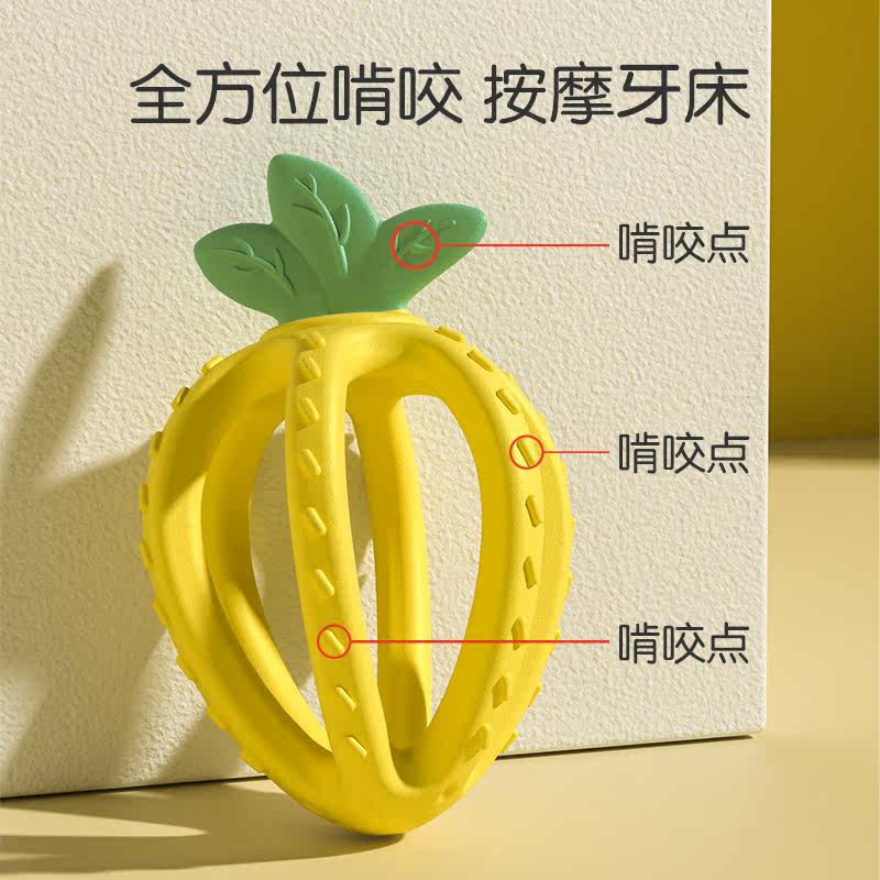 - Лимонно-желтая трехмерная клубника, прорезыватель, коробка для хранения, шнурок-держатель