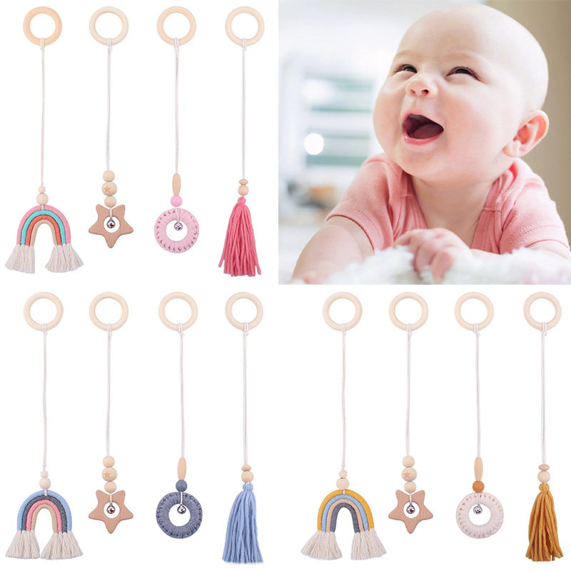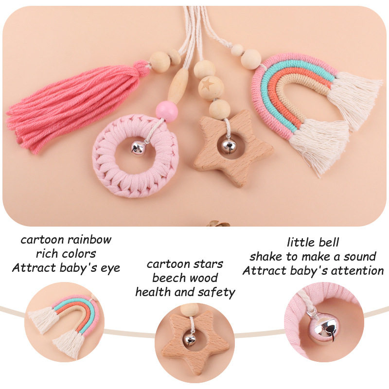 Мультяшная радужная подвеска для младенца для новорожденных, детский комплект, плетеная погремушка ручной работы, игрушка, 4 предмета, раннее развитие