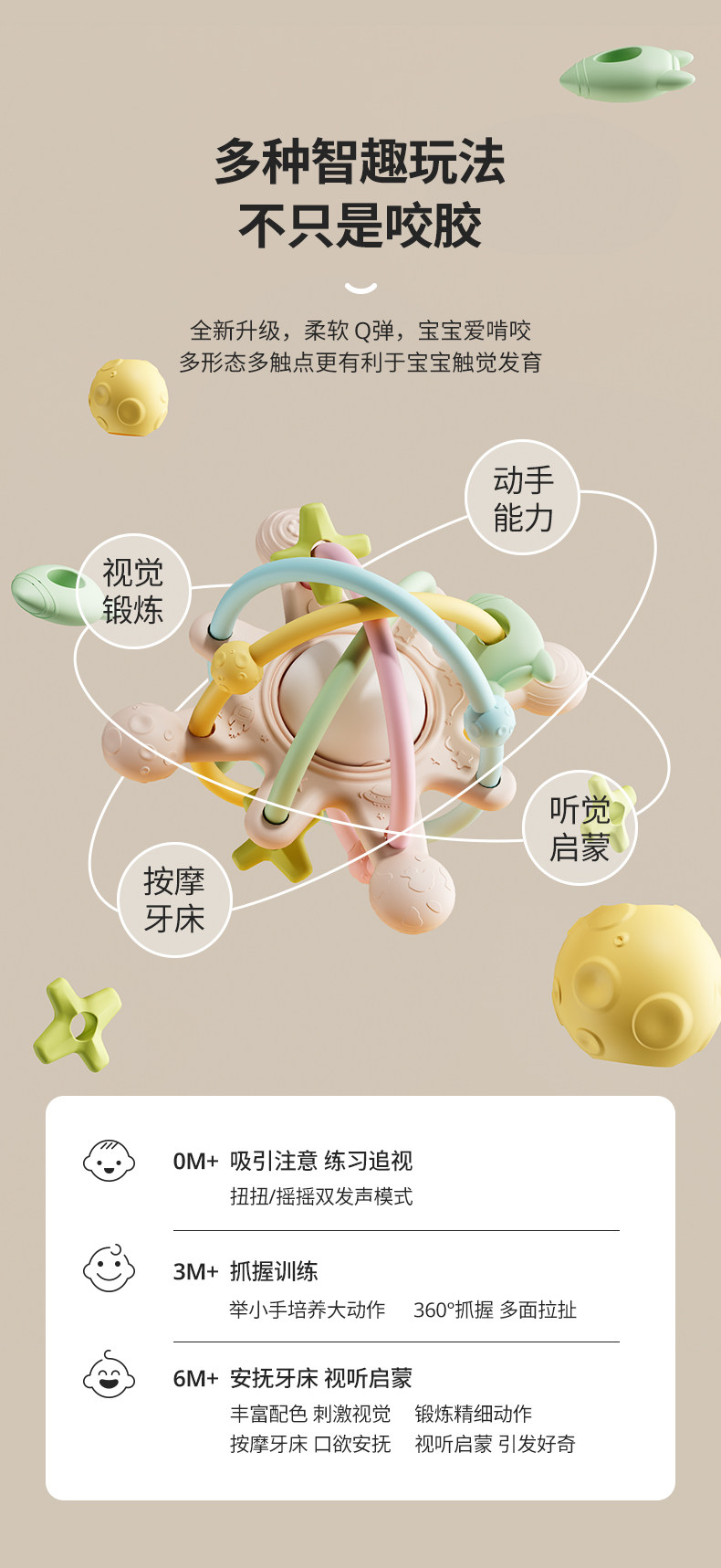 babyviva Детская хваталка, прорезыватель, игрушка, можно грызть, раннее развитие, 1 лет