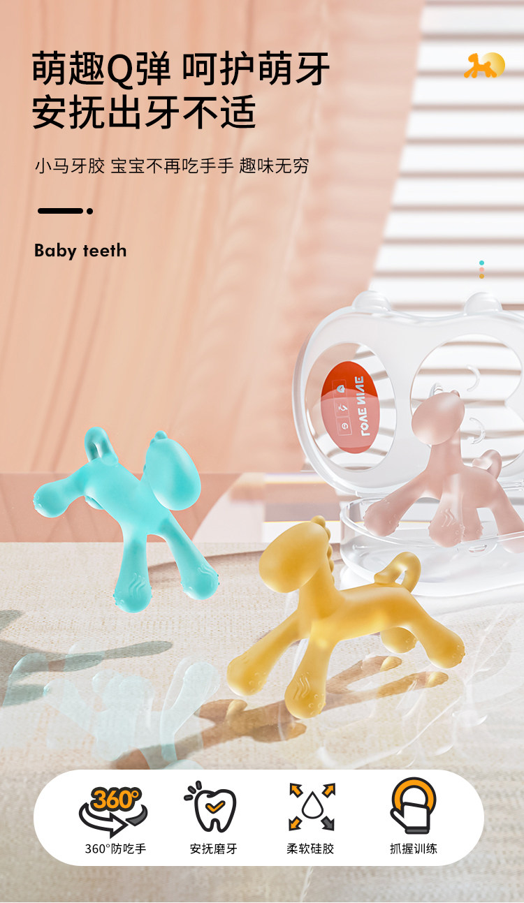Детский прорезыватель для раннего возраста, силиконовая жевательная игрушка, прорезывание зубов, 3-9-12 мес.