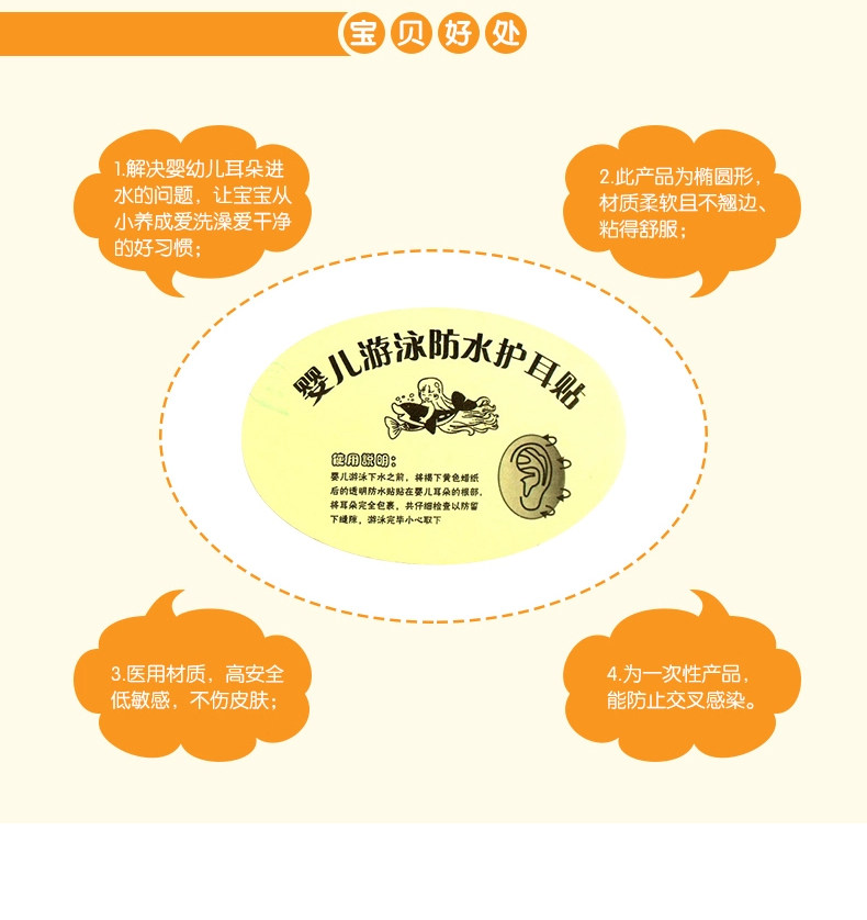 Детские ушные наклейки для ушей, защитное детское средство детской гигиены для младенца для новорожденных для плавания