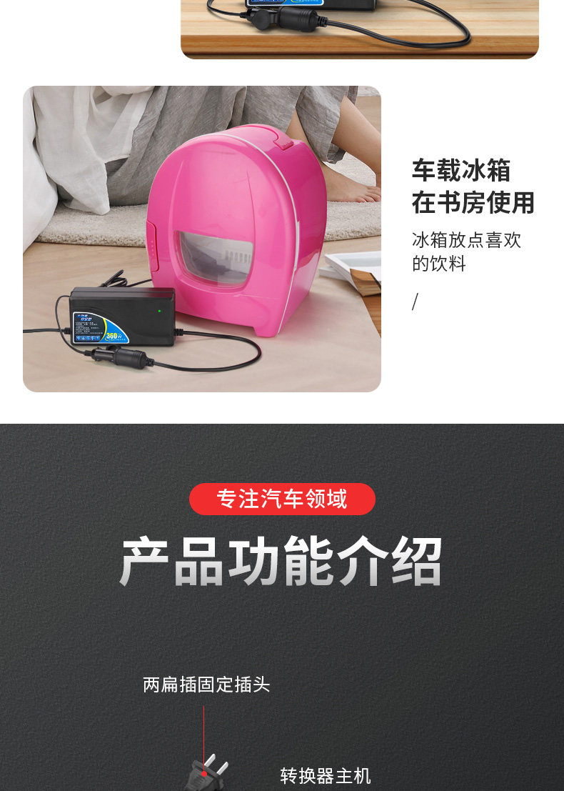 Он подходит для: автомобильных рисованных плит, автомобильных холодильников, водяных чашек для автомобилей, очистителей вакуумных автомобилей, надувных насосов автомобиля, вентилятора электромобилей, очистителей воздуха автомобиля, увлажнителя автомобиля и других электрических приборов автомобиля.