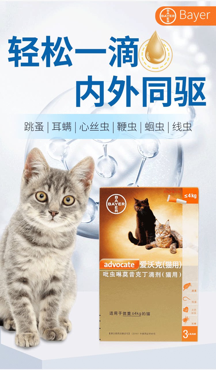 Германия Bayer's Volva Cat Dewerming Medicine внутри и снаружи тела и за пределами тела и за пределами тела котенка Haile Miaosheng, чтобы удалить ушные ушники.