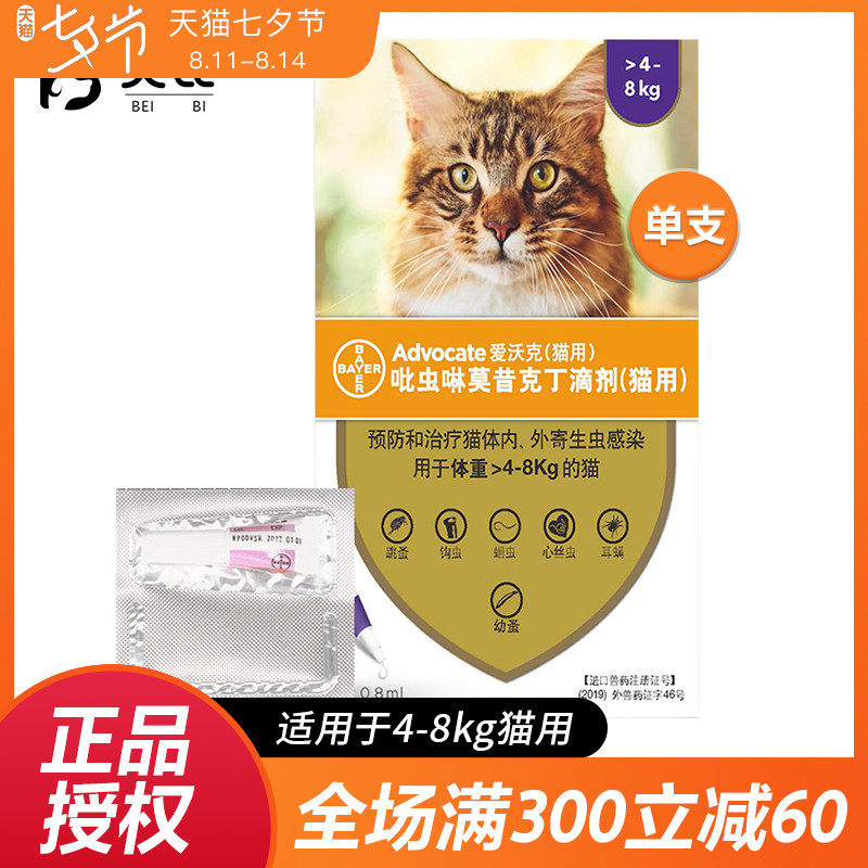 Bayer EWK внутри и снаружи тела и наружного лекарства дегерминга 4-8 кг кошек с тикающими кошками Внутреннее и внешнее внутреннее и внешнее тело в кошек