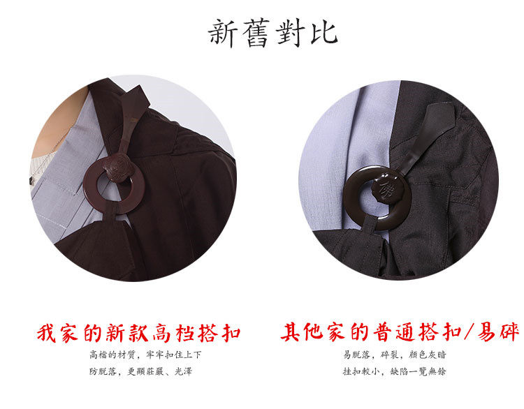 | Ткань: | Льняная мантия (носят миряне), Тай Маманьи (носят миряне), Тайма Вуйи (Мастер Мастер), Тайма Цийи (Мастер Мастер), Пять полосок тайваньской конопляной одежды (носят миряне), Мулан цвет маньи |