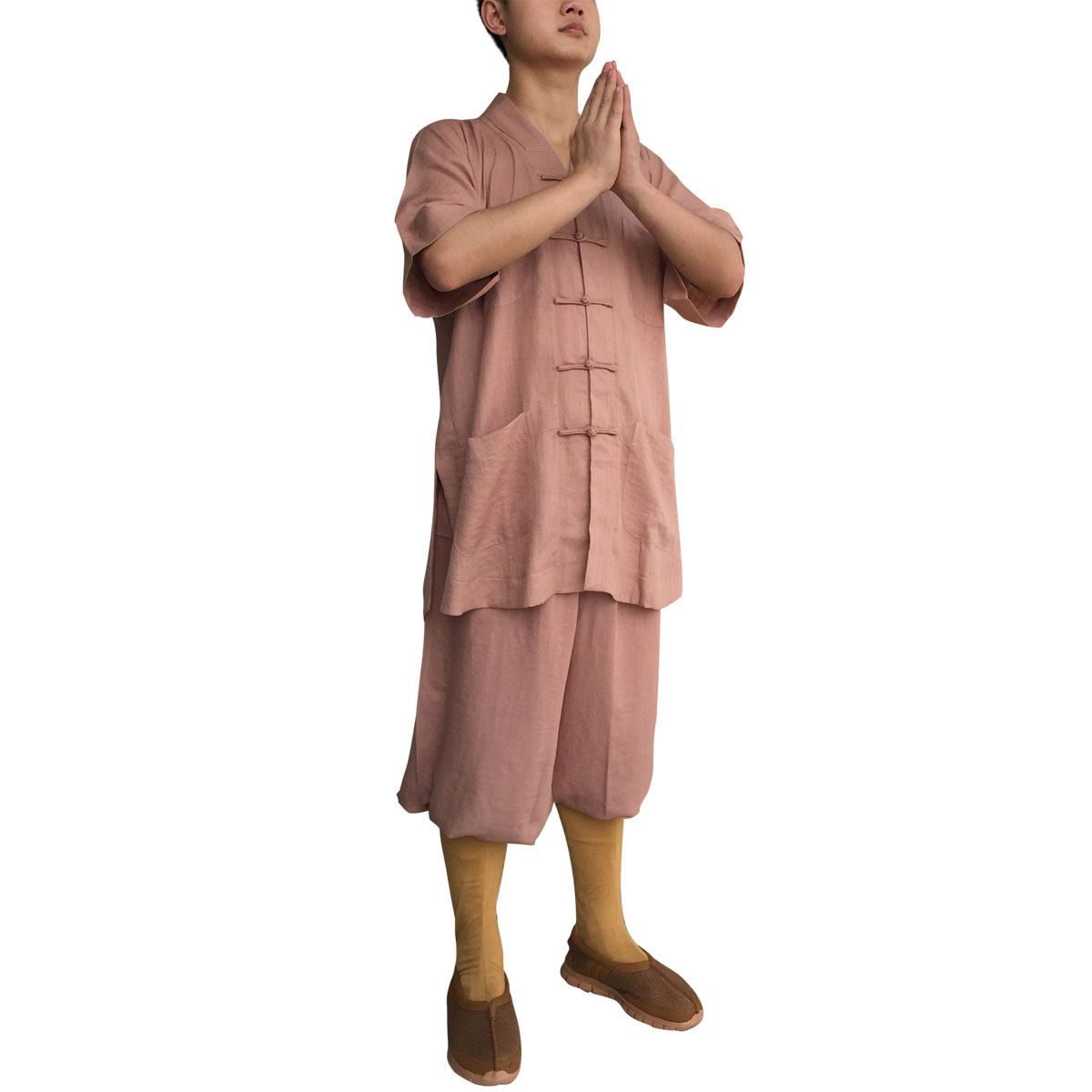 [Описание продукта] Ткань использует бамбуковые конопляные ткани, которые имеют преимущества дышащего поглощения пота и прохладности. Он подходит для жаркого лета. Профессиональные фабрики обслуживания монаха работают в стиле.