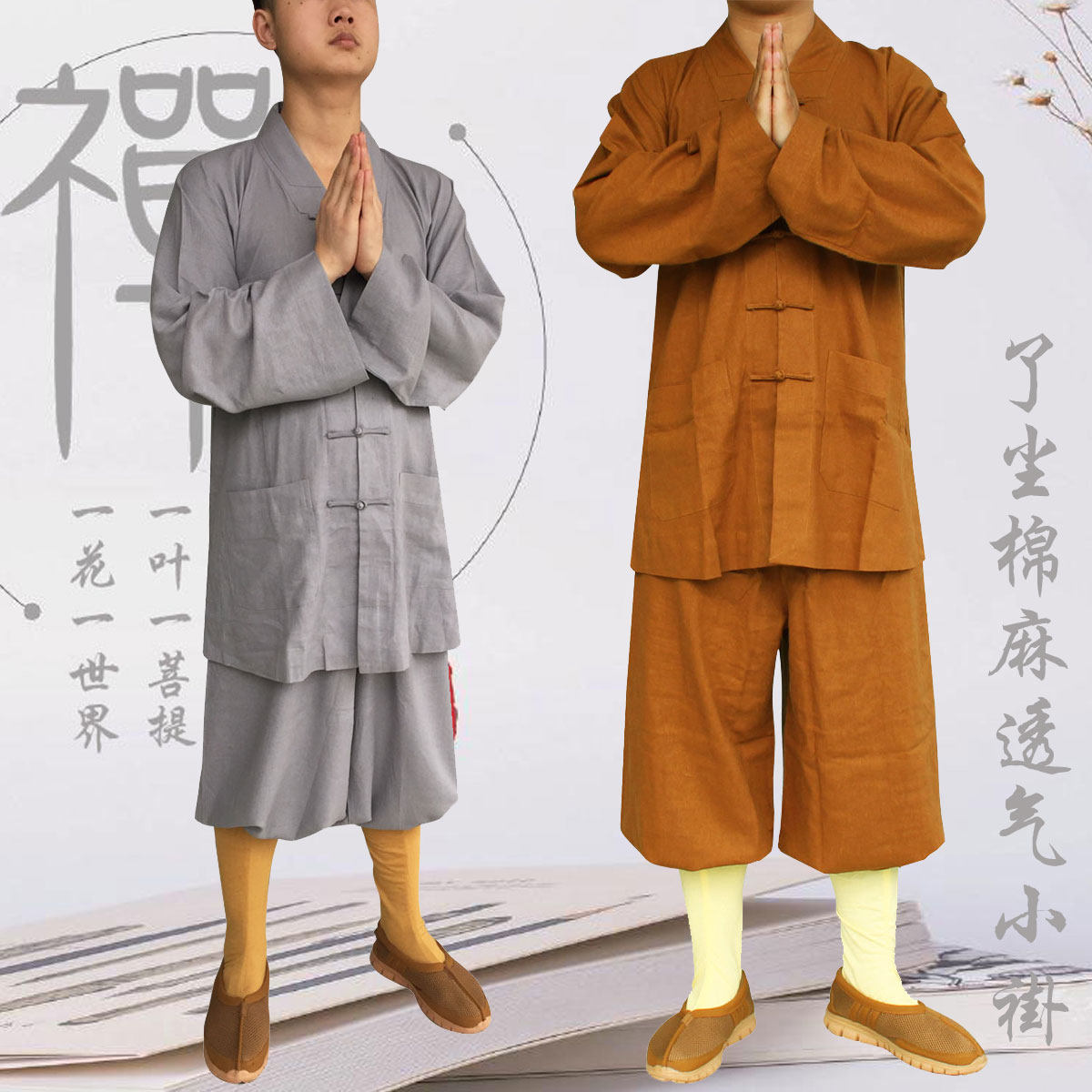 Монаха Damini Monk Clothing в летней сухой и воздухопроницаемой антибактериальной хлопковой хлопке и льняной ткани Претает одежда для монаха.