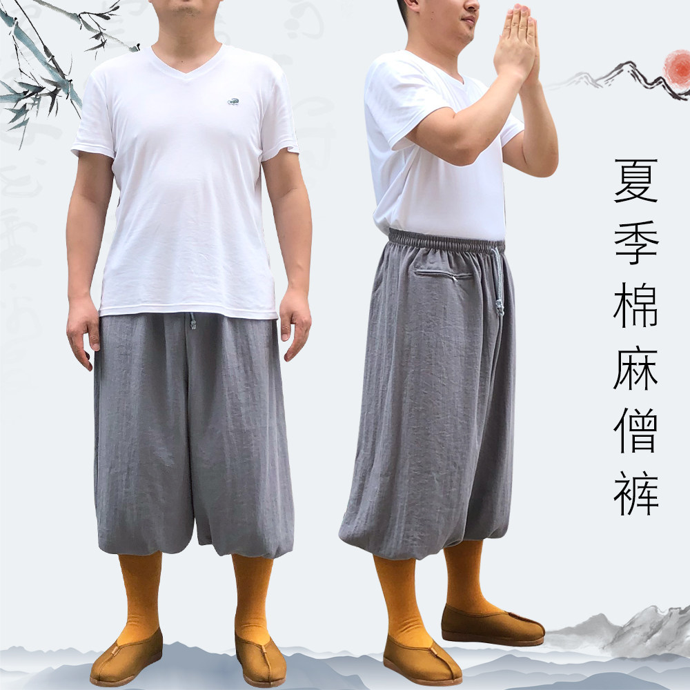 Miao и торжественный монах обслуживание монашкой одежды Zen Ремонт небольшое платье, мягкий хлопок, конопля, дышащий, прохладный, анти -пилот, летняя традиционная широко раскрытая монашные брюки