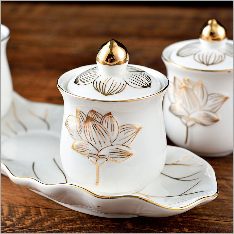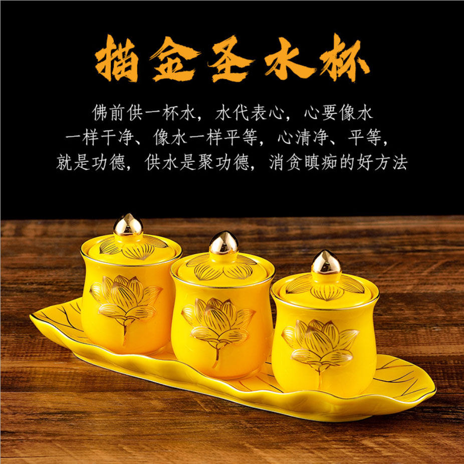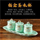 Принадлежности для медитации Зал Будды Керамическая чашка для подачи воды для чашки Будды Лист лотоса Чашка с тиснением лотоса для очистки воды для чашки Три чашки