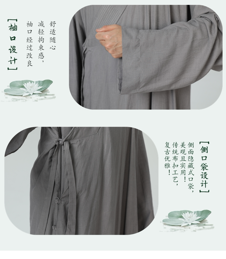 Хлопко -линейно -монашная одежда длинное платье монаш