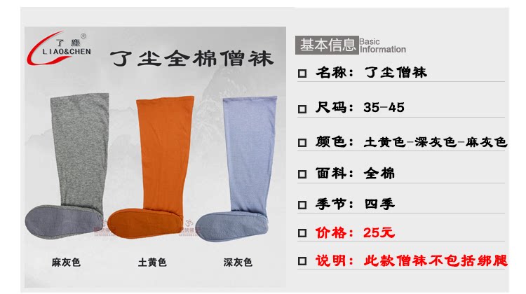 Dust Pure Cotton Monk Носки и носки серо -желтые жилые монахи, монахи, обувь 袈 了 了 了 了 了 了 了 了 了 了