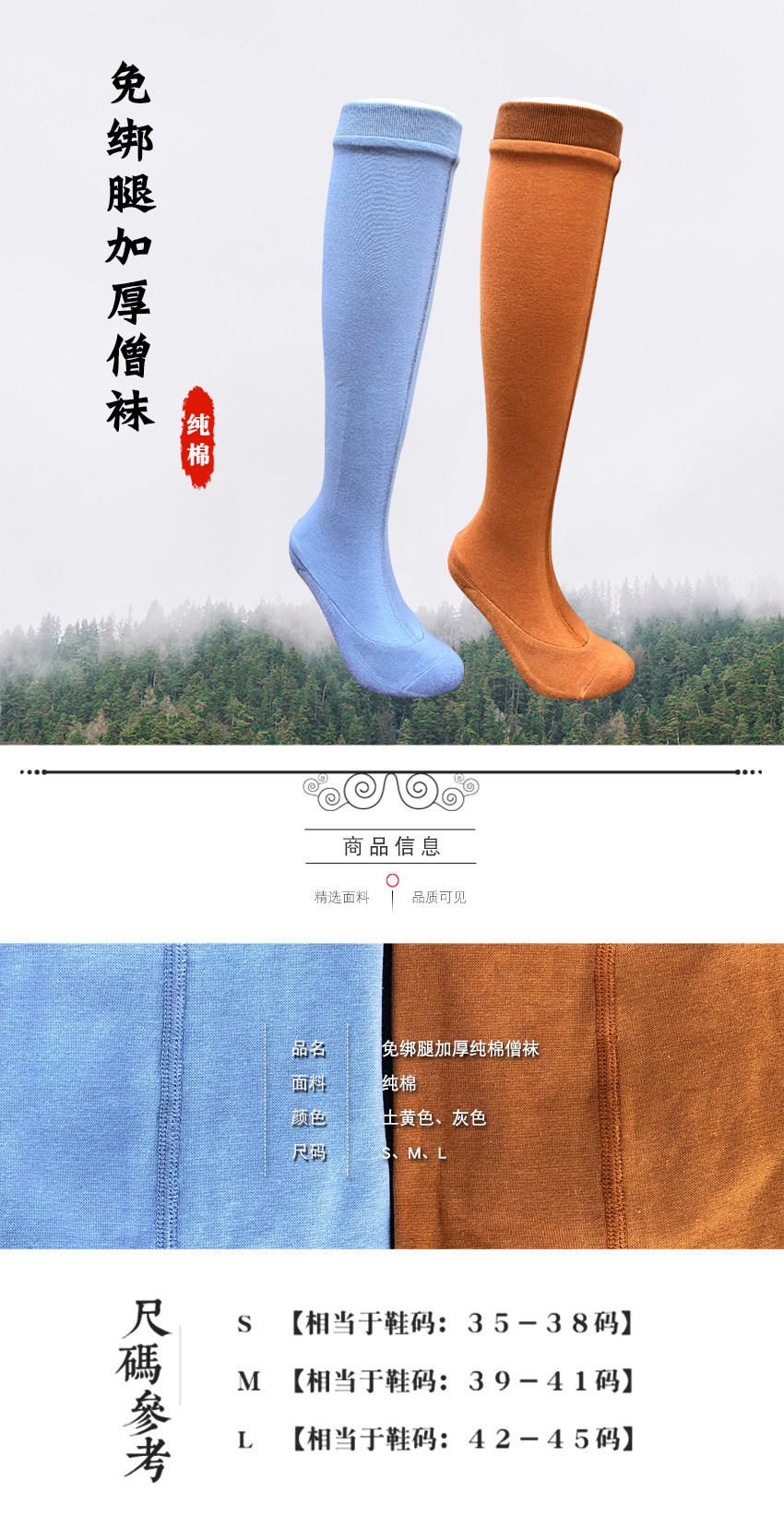 | Монахи носки: | S номер (35 ярдов-38 ярдов), M номер (39 ярдов-41 ярдов), L № (42 ярда-45 ярдов) |