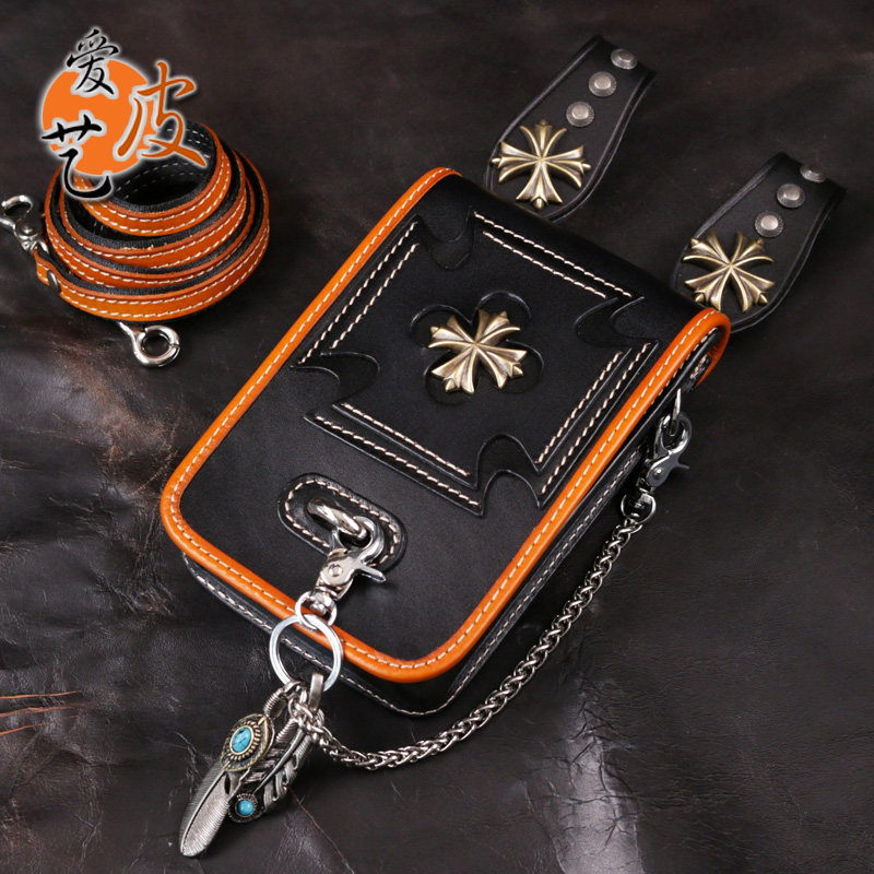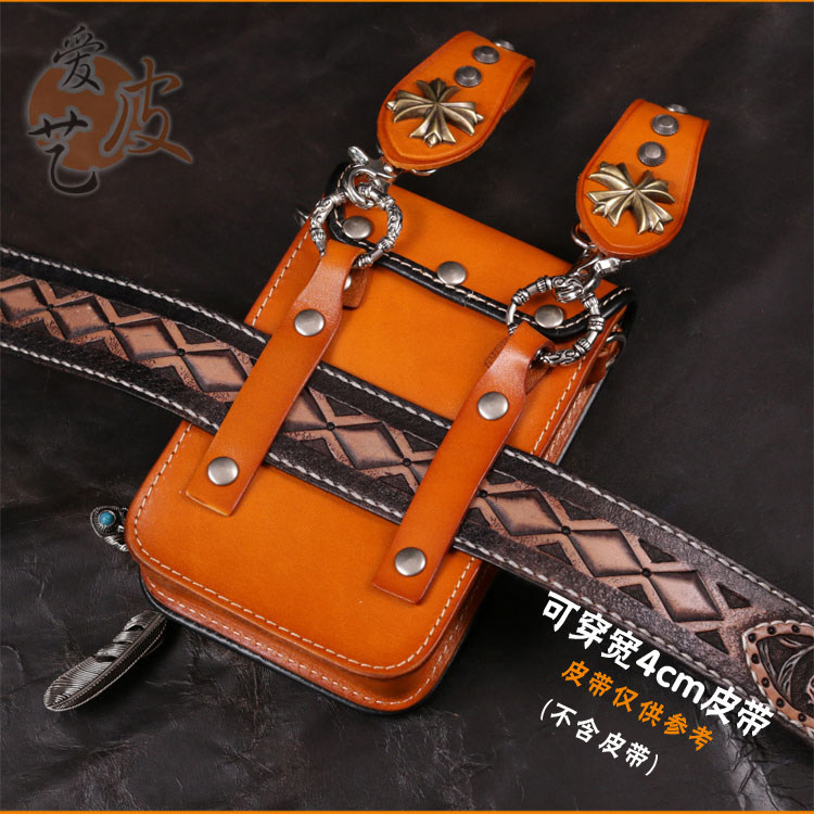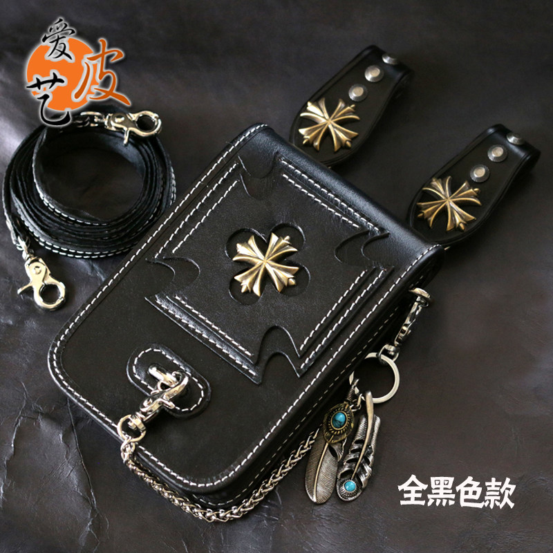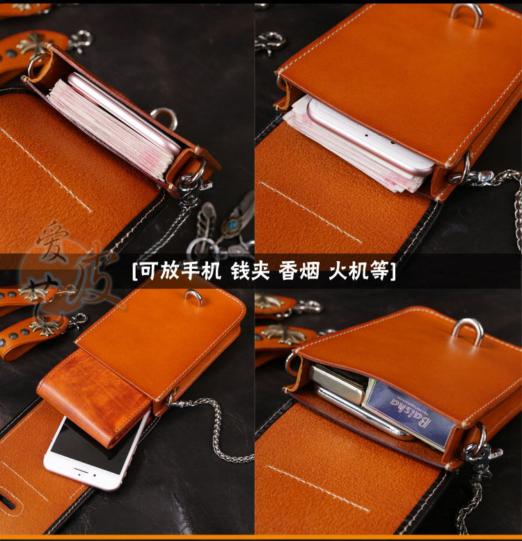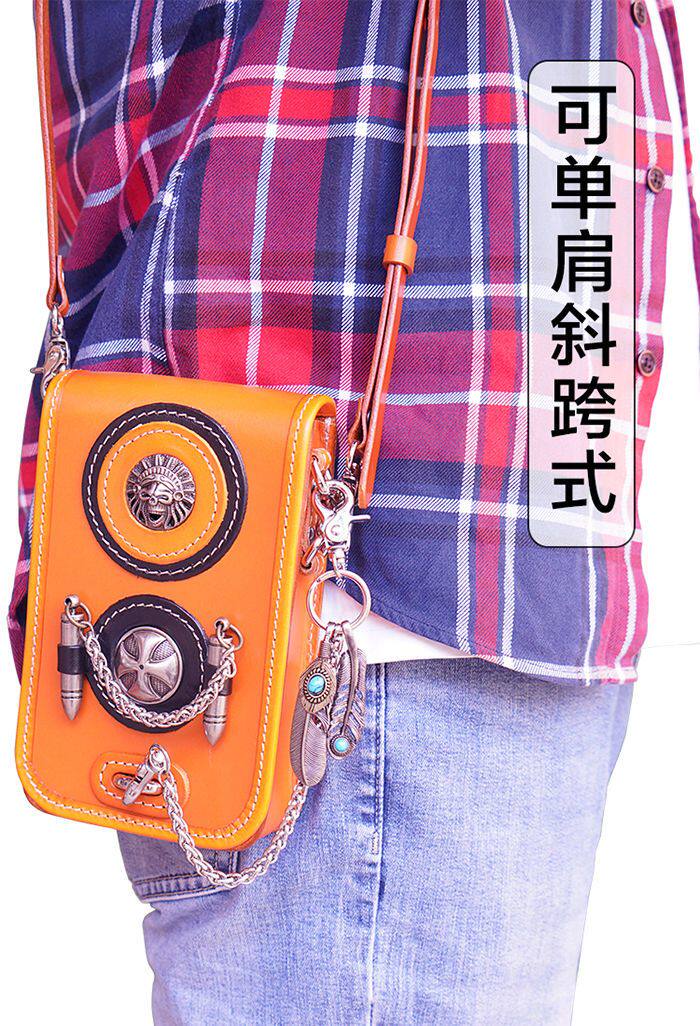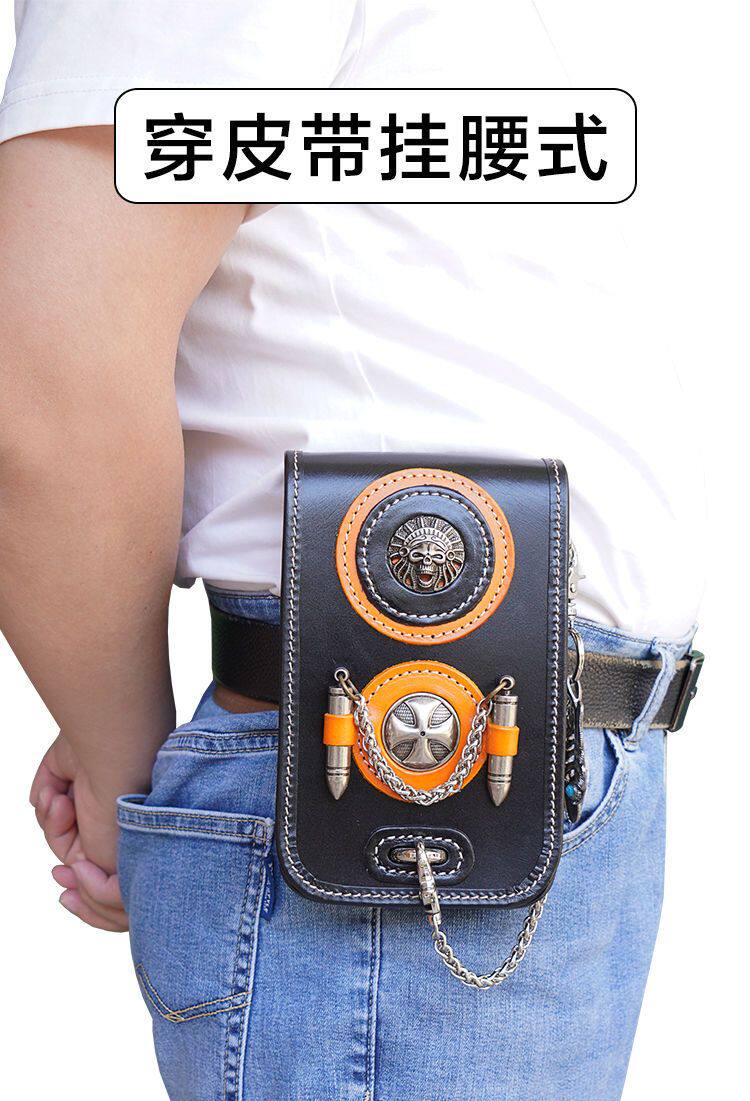 Tide, кожаная поясная сумка, сумка через плечо подходит для мужчин и женщин, барсетка, металлический небольшой маленький мобильный телефон, DIY, в стиле панк