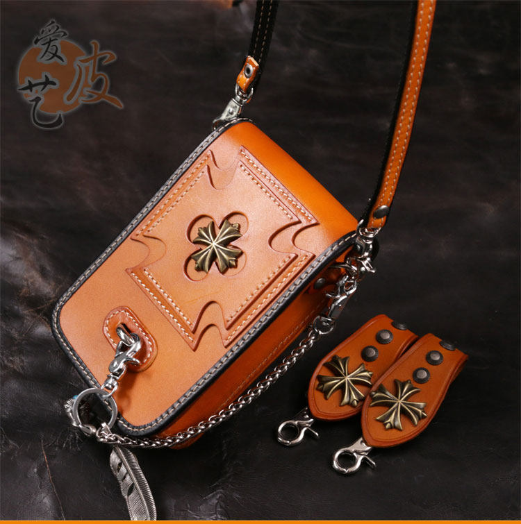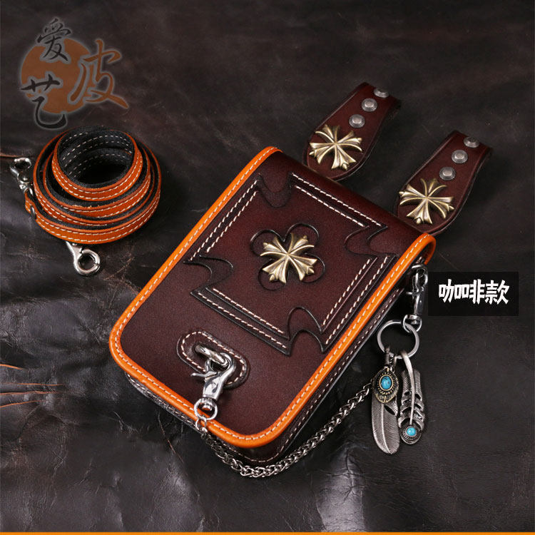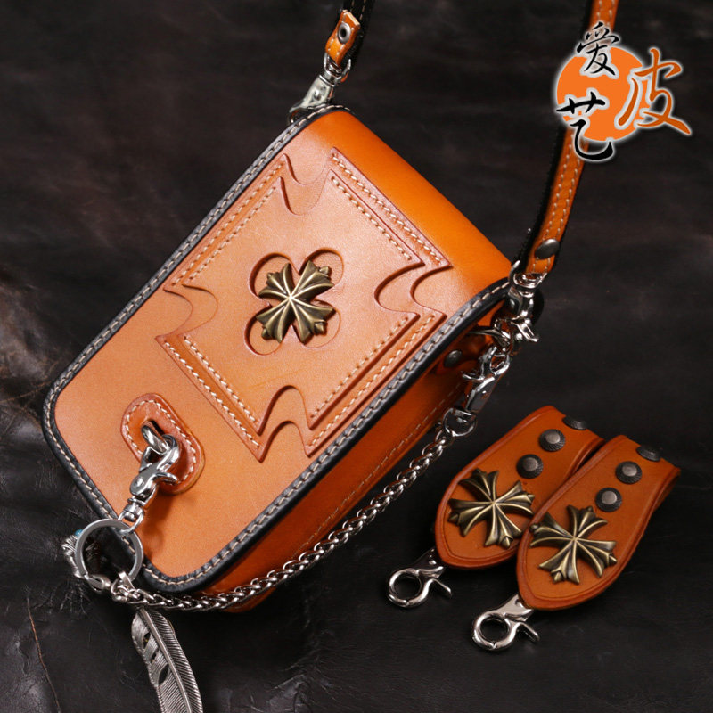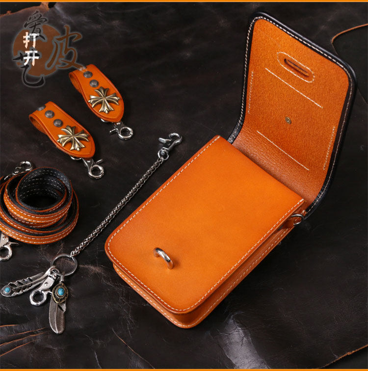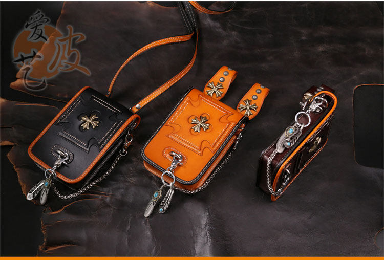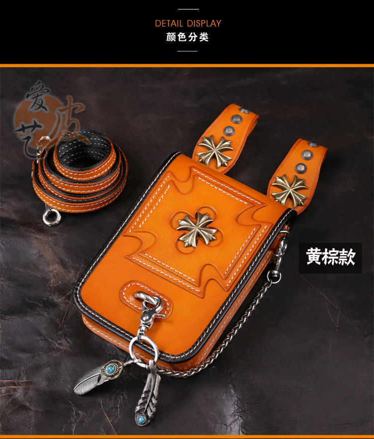 Tide, кожаная поясная сумка, сумка через плечо подходит для мужчин и женщин, барсетка, металлический небольшой маленький мобильный телефон, DIY, в стиле панк
