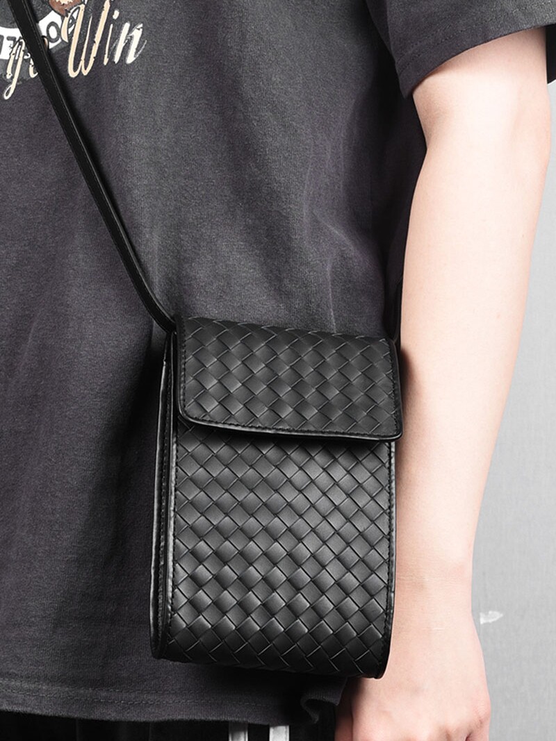 Маленькая небольшая сумка, плетеная сумка через плечо, из натуральной кожи, в западном стиле