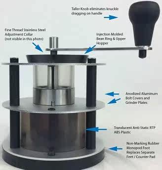 - Резиновая крышка предотвращает прыжки бобов во время шлифования, кружок верхней фасоли играет роль сбора бобов