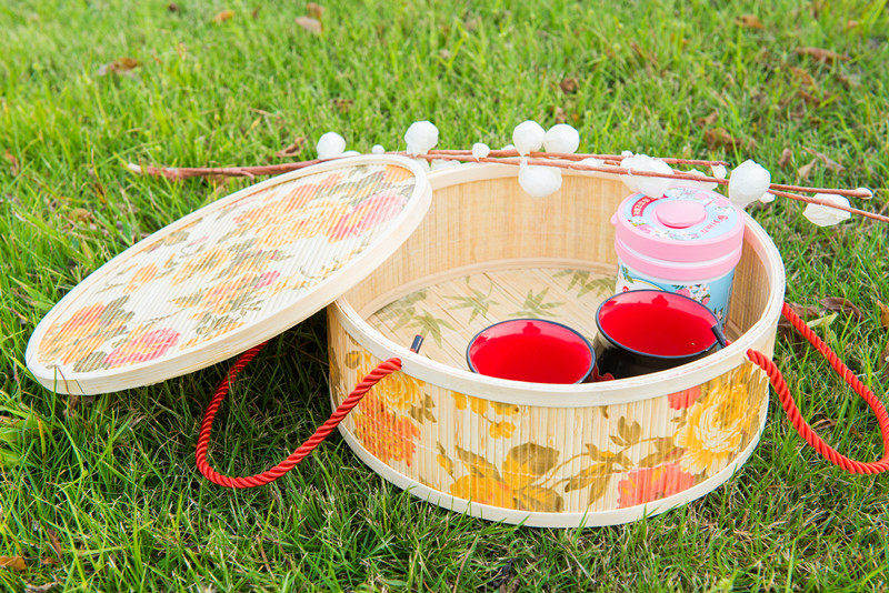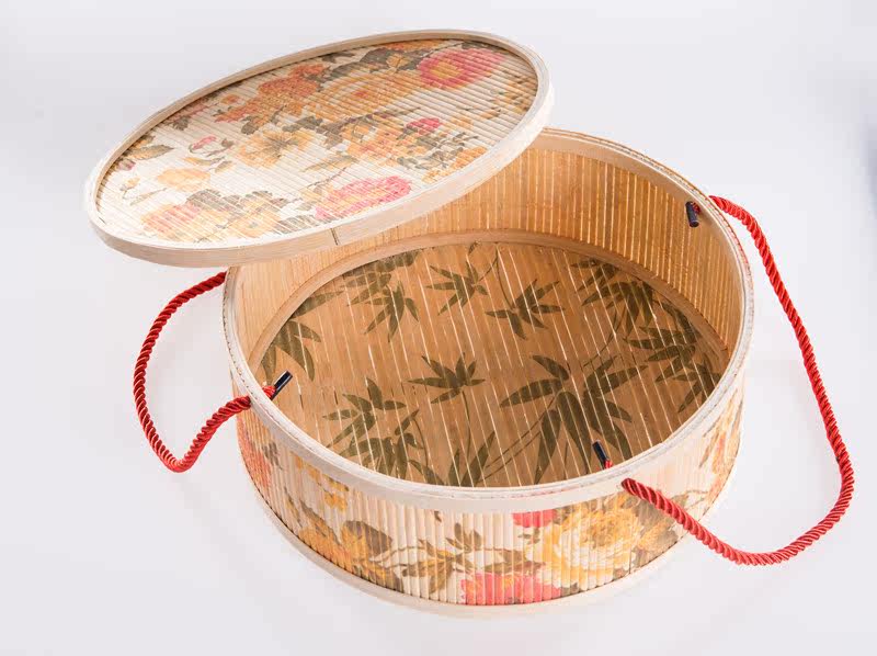 Пиони -цветочный рисунок маленькая плоская бамбуковая коробка