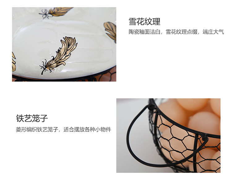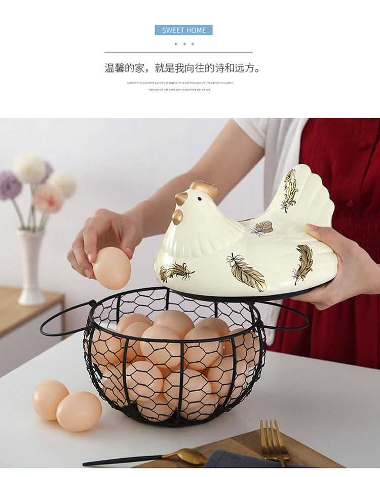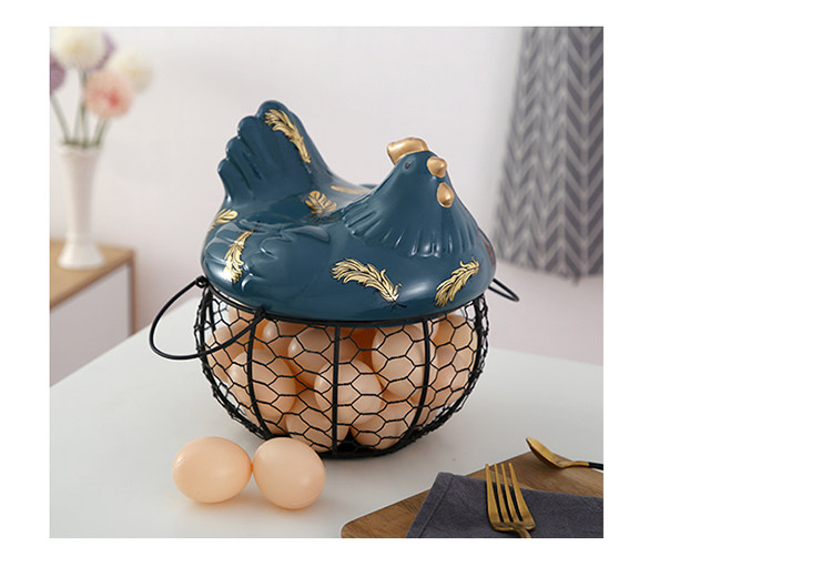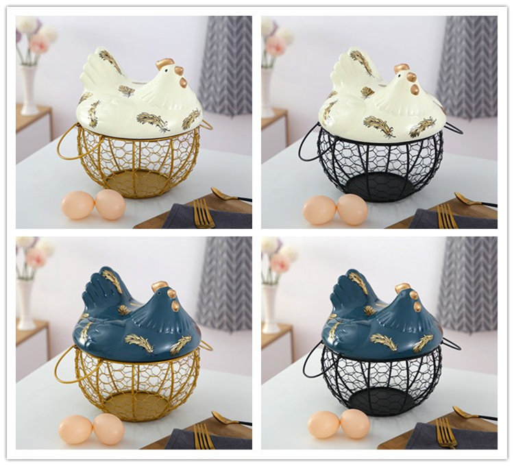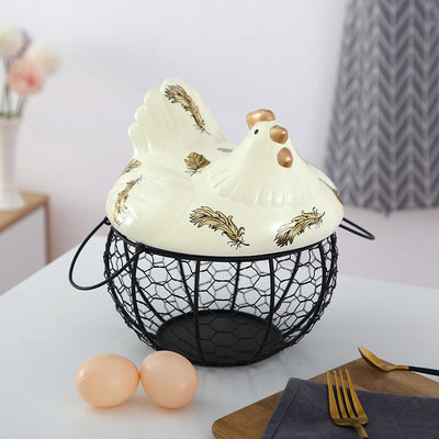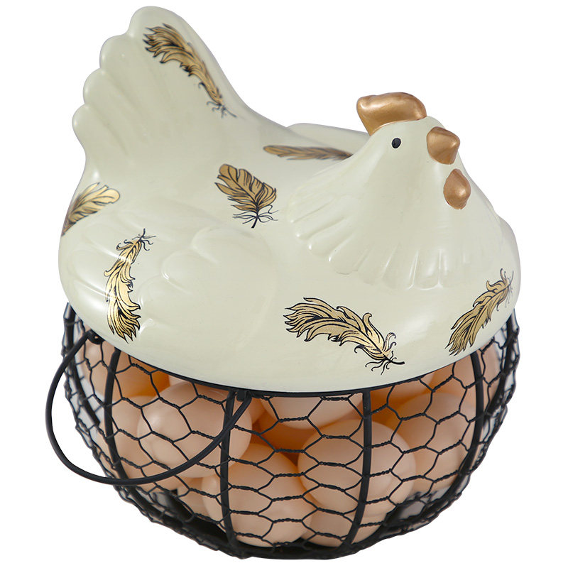 Американская кантри -контейнер с яйцом кухня керамическая глазурная глазурь железные художественные фестивальные корзины для хранения яиц