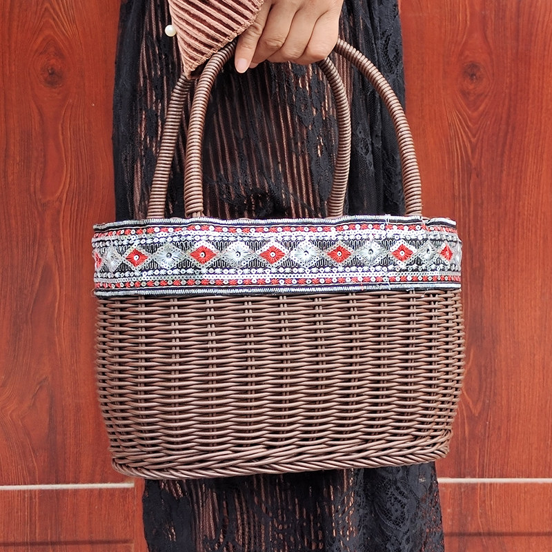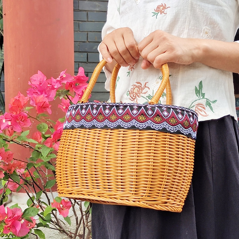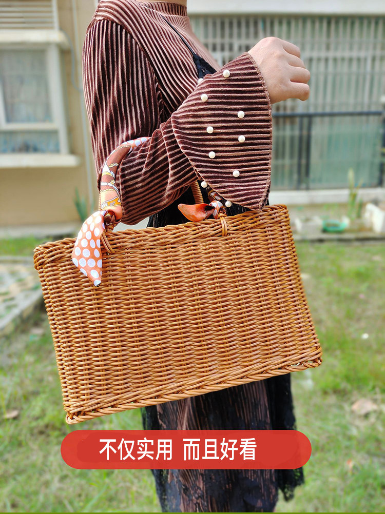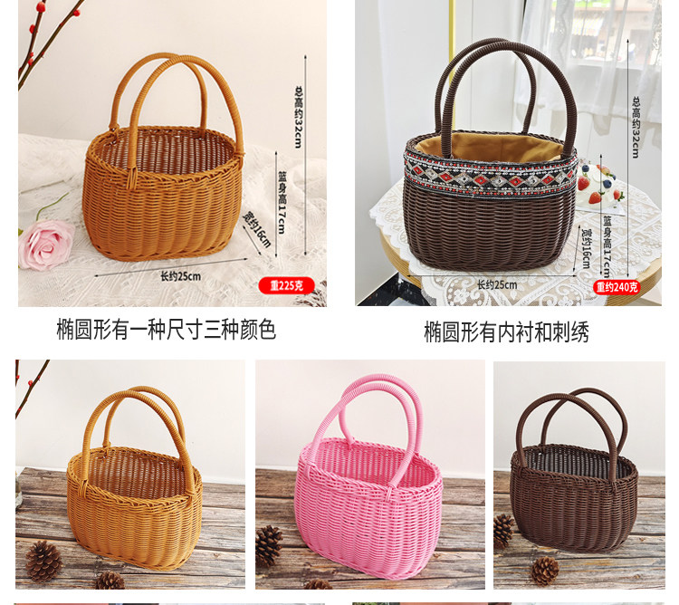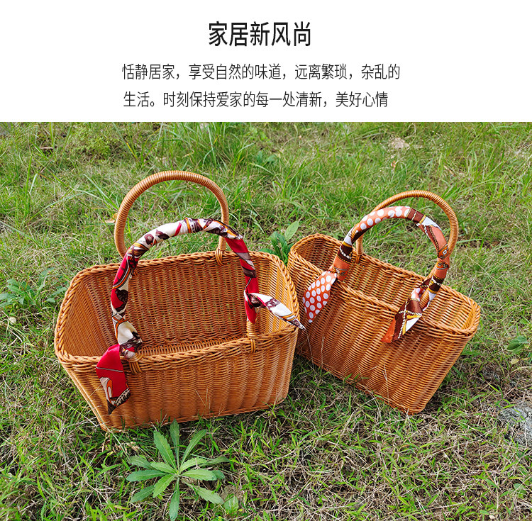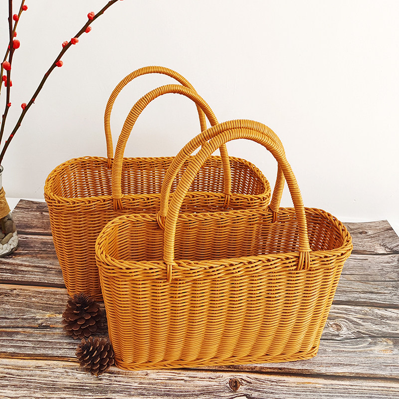 Портативная корзина из ротанга, корзина для покупок, пластиковая плетеная корзина для овощей и фруктов, реквизит, портативные товары для интернет-знаменитостей