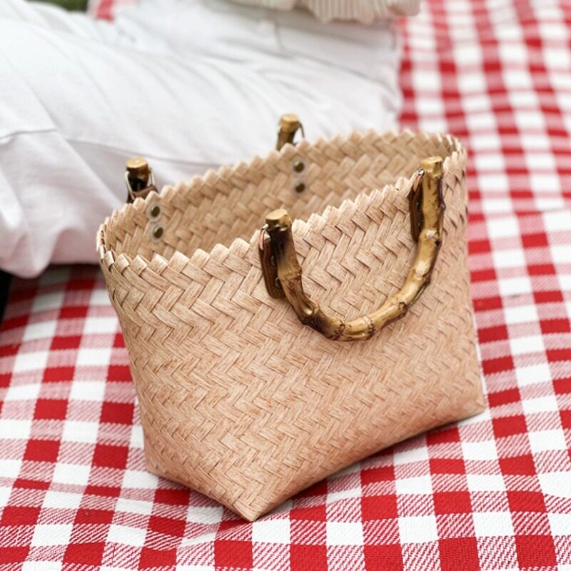 Пляжная ретро сумка для отдыха, универсальная бамбуковая корзина