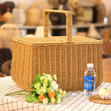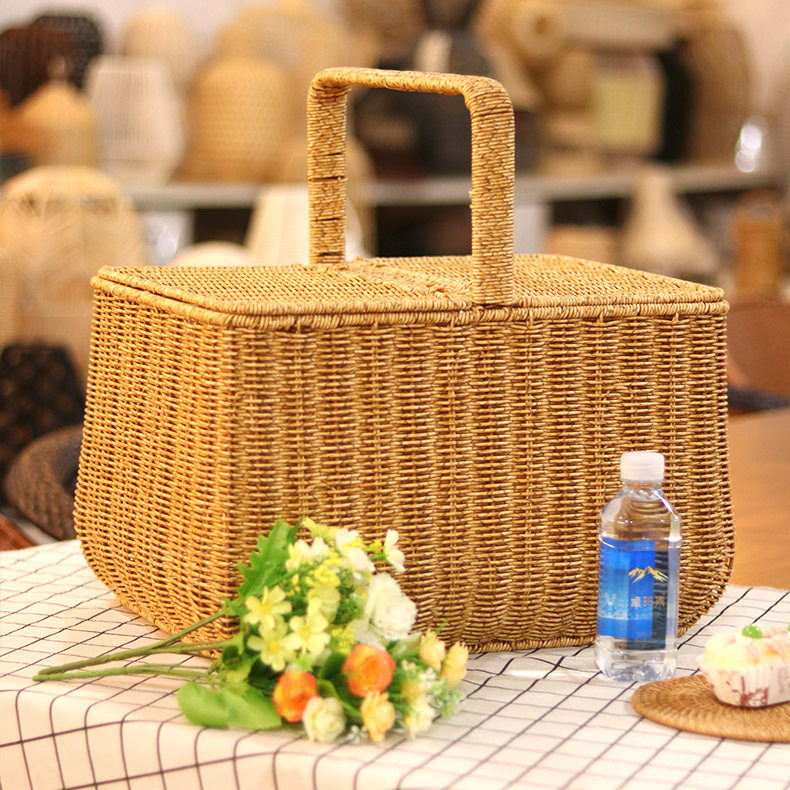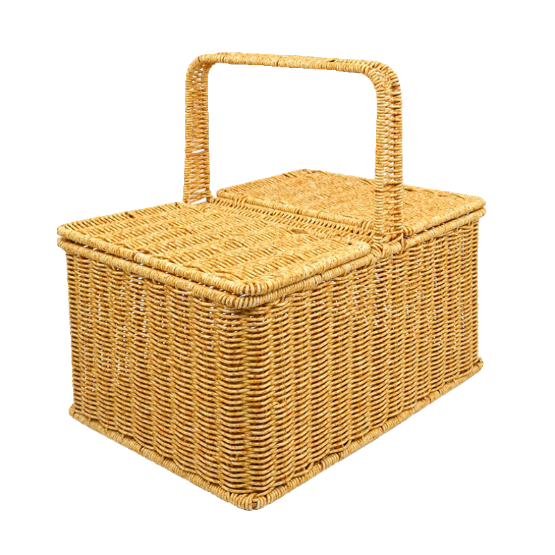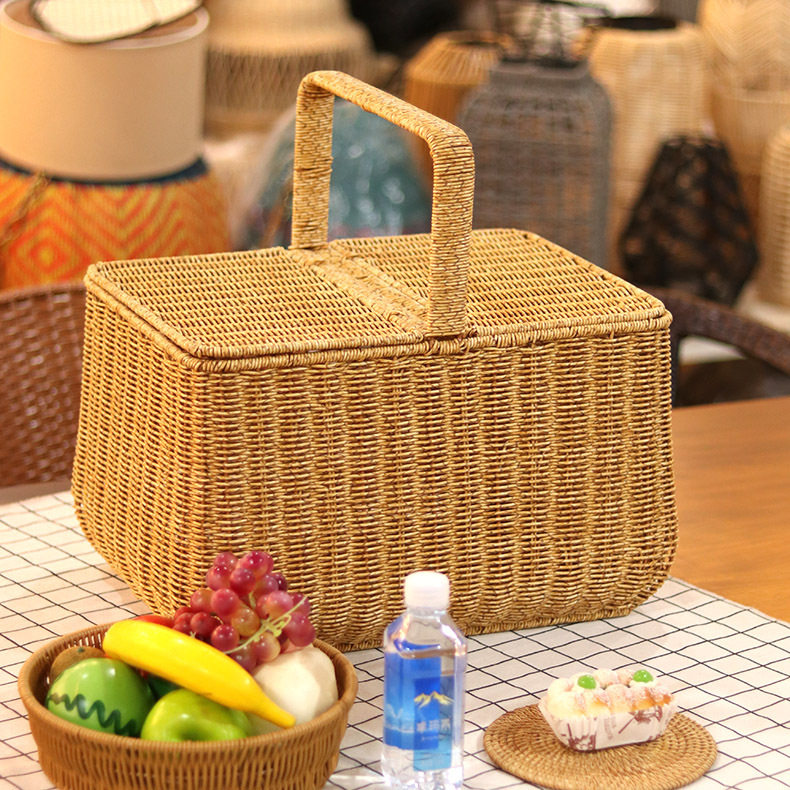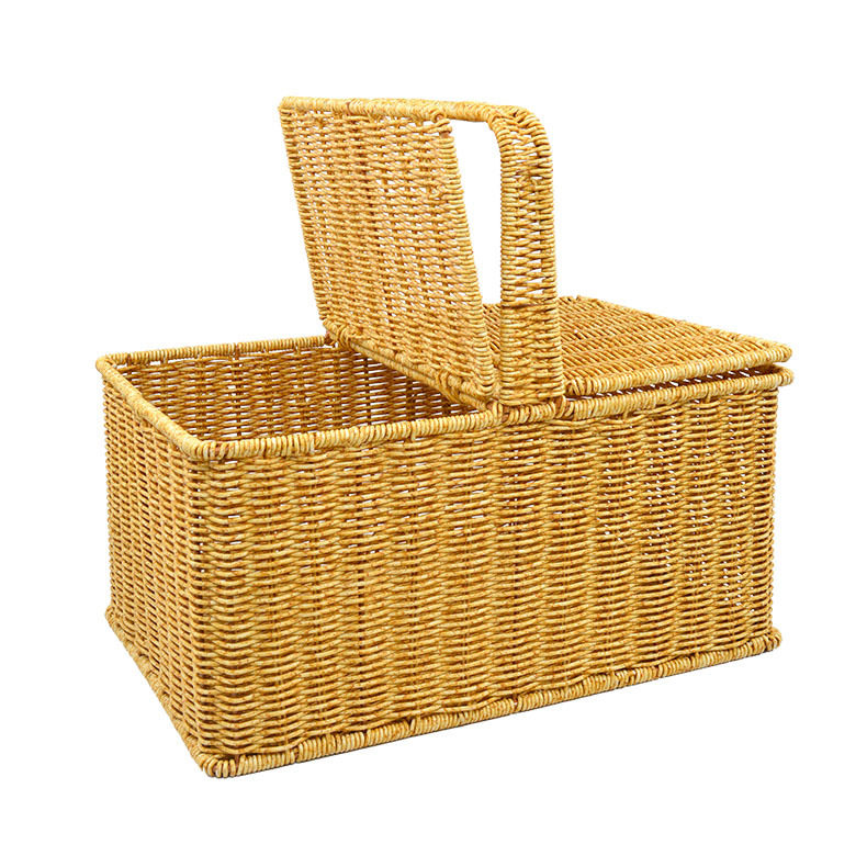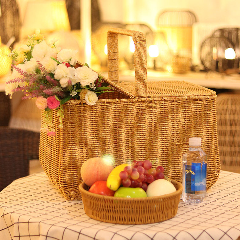 Портативная корзина для покупок из искусственного ротанга с крышкой для хранения пикника, домашняя корзина для овощей и фруктов, большая супер