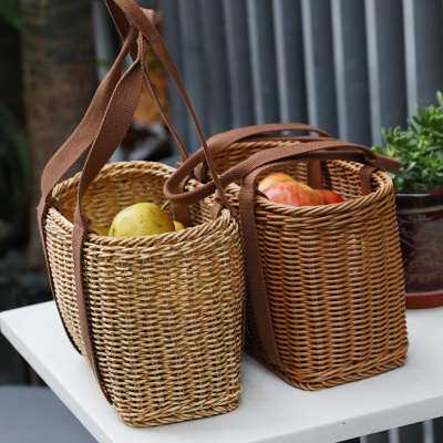 Корзина для покупок из искусственного ротанга, портативная пластиковая корзина для сбора урожая большой емкости, корзина для покупок, реквизит для пикника, корзина для овощей, портативная корзина для супермаркета