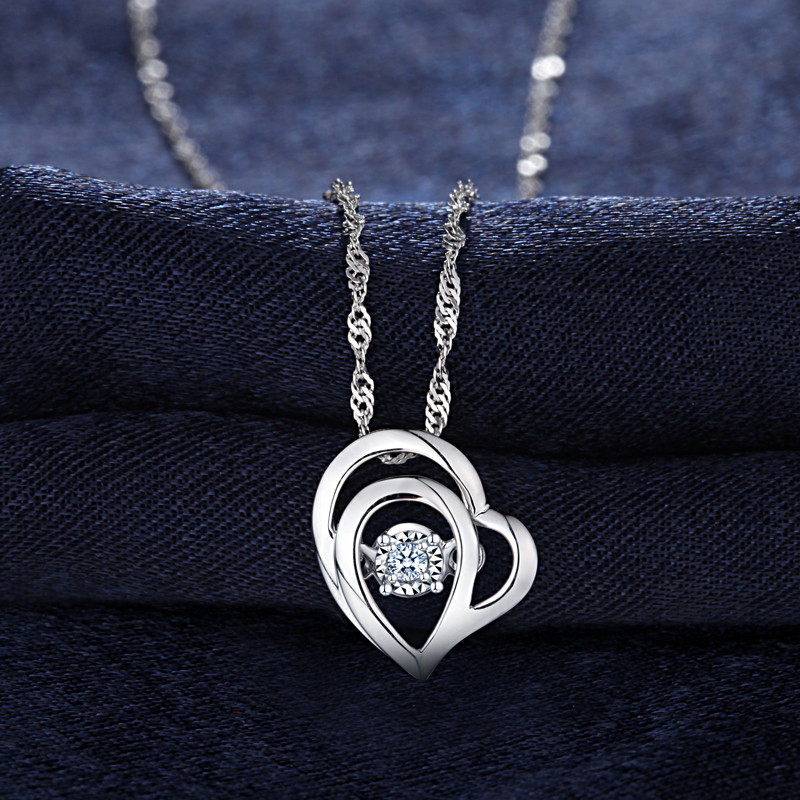Ювелирное украшение, платиновая бриллиантовая подвеска в форме сердца, гибкое ожерелье, белое золото 18 карат