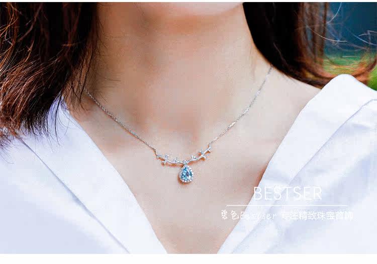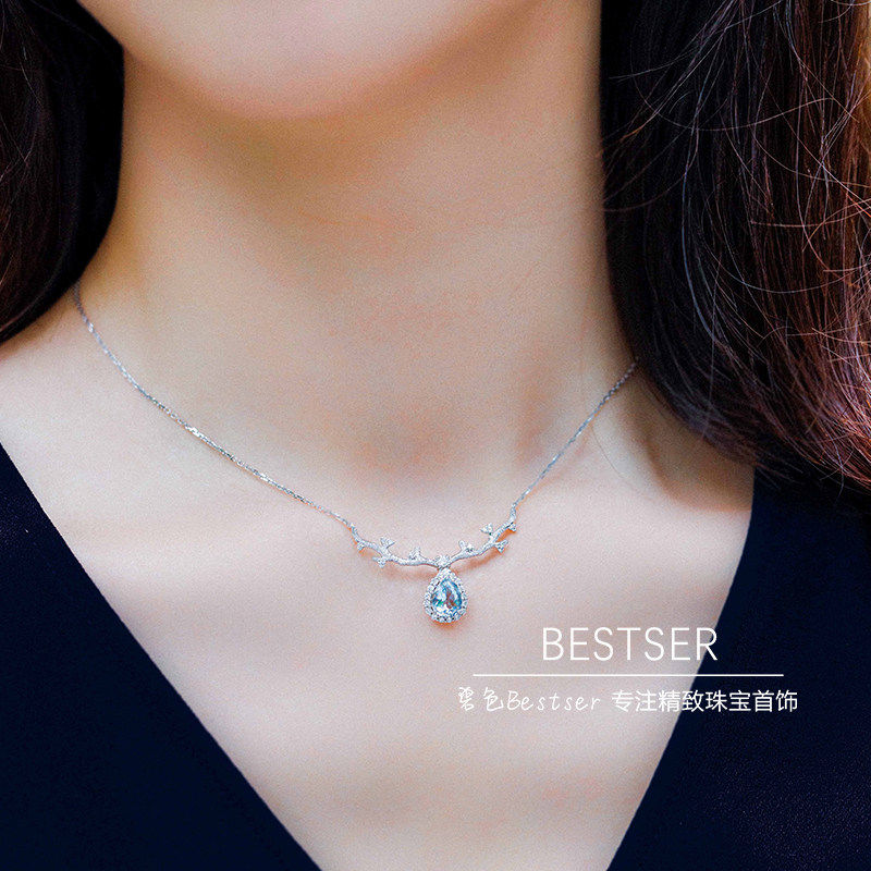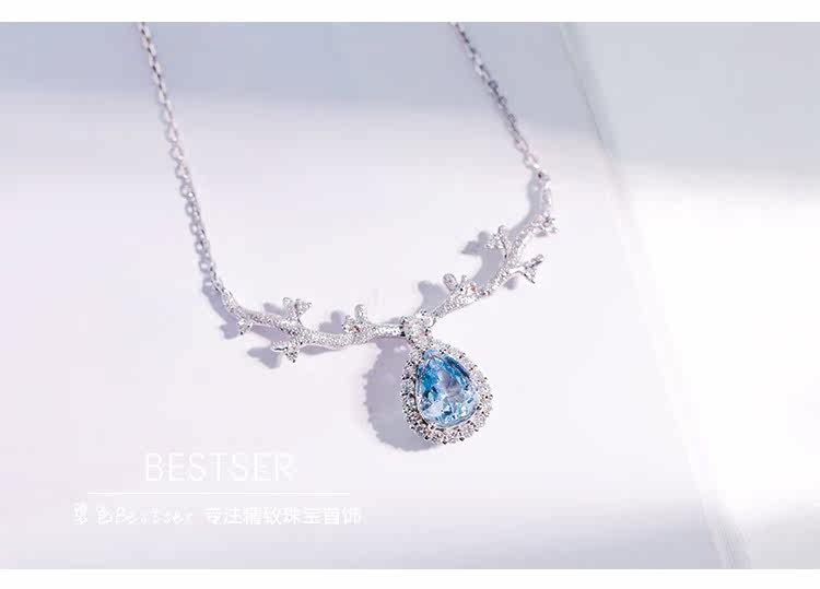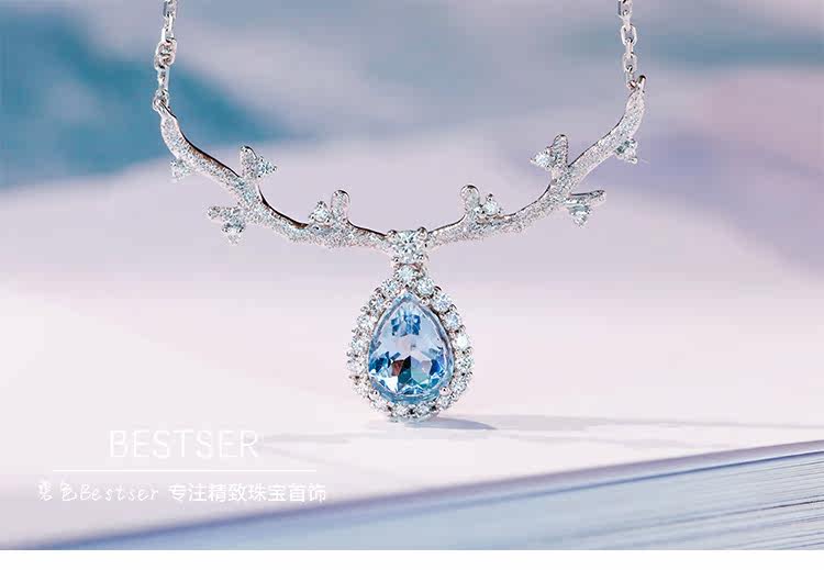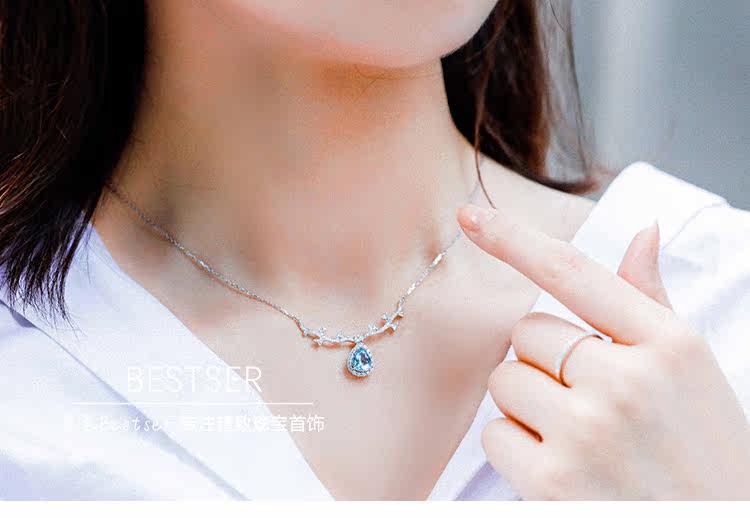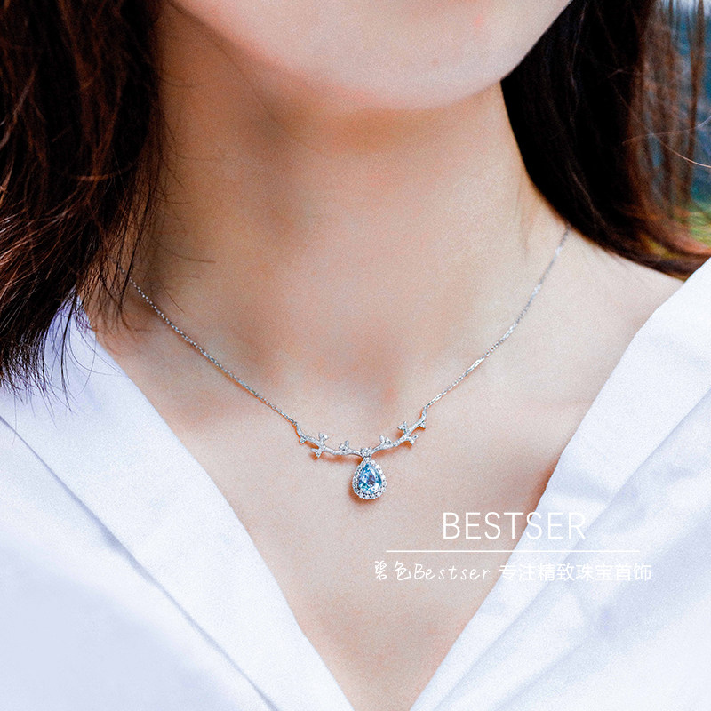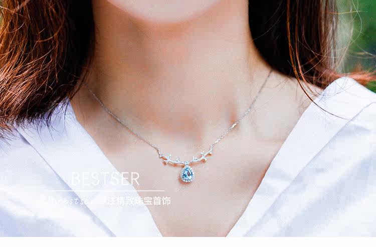Сапфировое ожерелье, бриллиантовая подвеска, цепочка до ключиц для влюбленных, 1 карат, золото 750 пробы