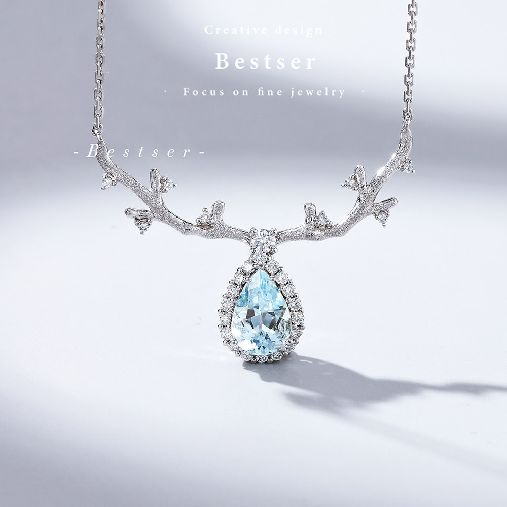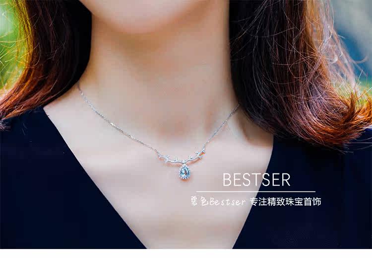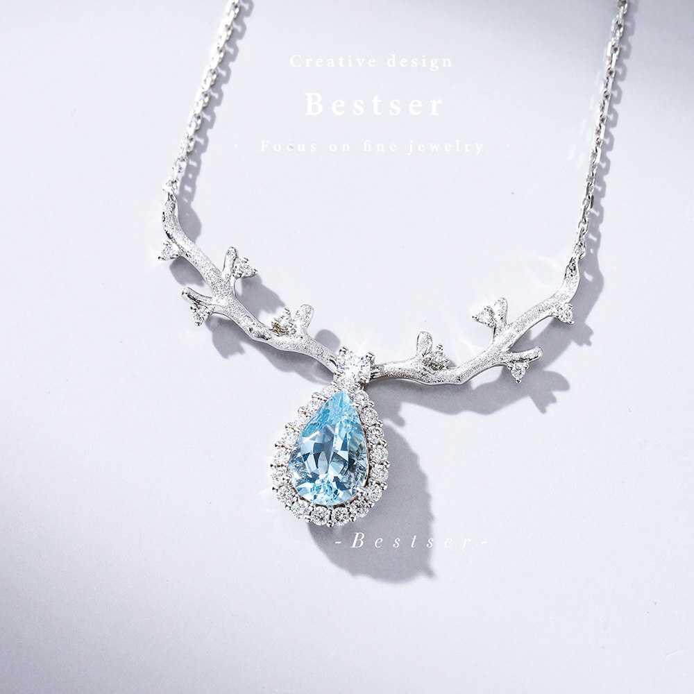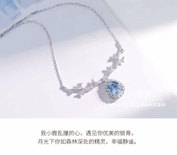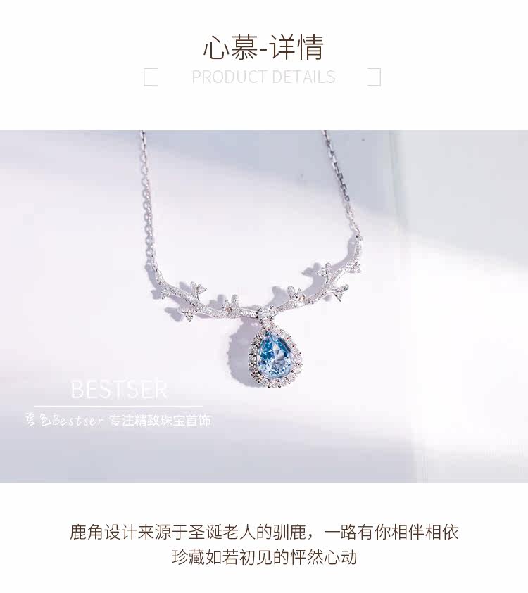 Сапфировое ожерелье, бриллиантовая подвеска, цепочка до ключиц для влюбленных, 1 карат, золото 750 пробы