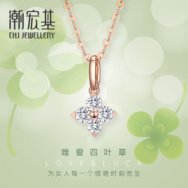 Acer, бриллиантовая подвеска, золотое ожерелье, цепочка, четырехлистный клевер, золото 18 карат, розовое золото
