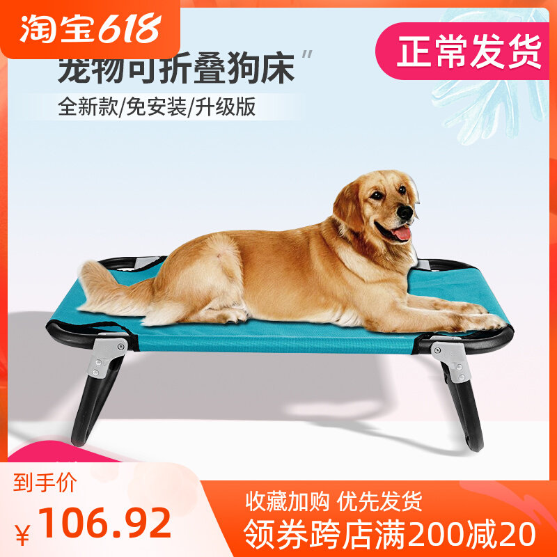 Средняя большая собака Золотая шерсть, военная кровать домашняя собака Железная полка сгущенная сетка подвесная сетка, влага -воздухопроницаемое воздушная подушка с воздушной подушкой прохладный кровать