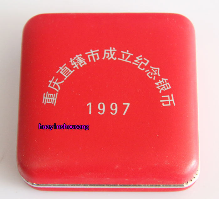 В 1997 году 1 унция муниципалитета Чунцина создала панду плюс серебряную коробку монеты в муниципалитете Чунцина.