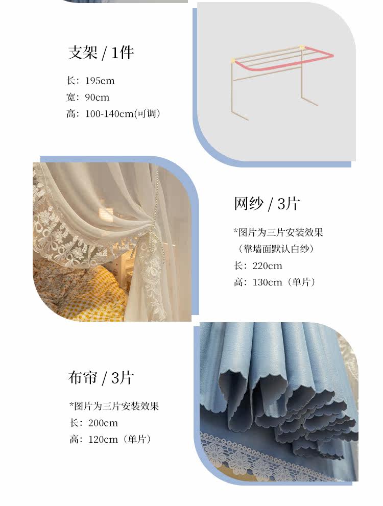 | Ширина кровати: | Высота занавеса 1,2 м [подходит для ширины ≤1m., Высота занавеса 1,5 м [подходит для широкого ≤1m кровати] |